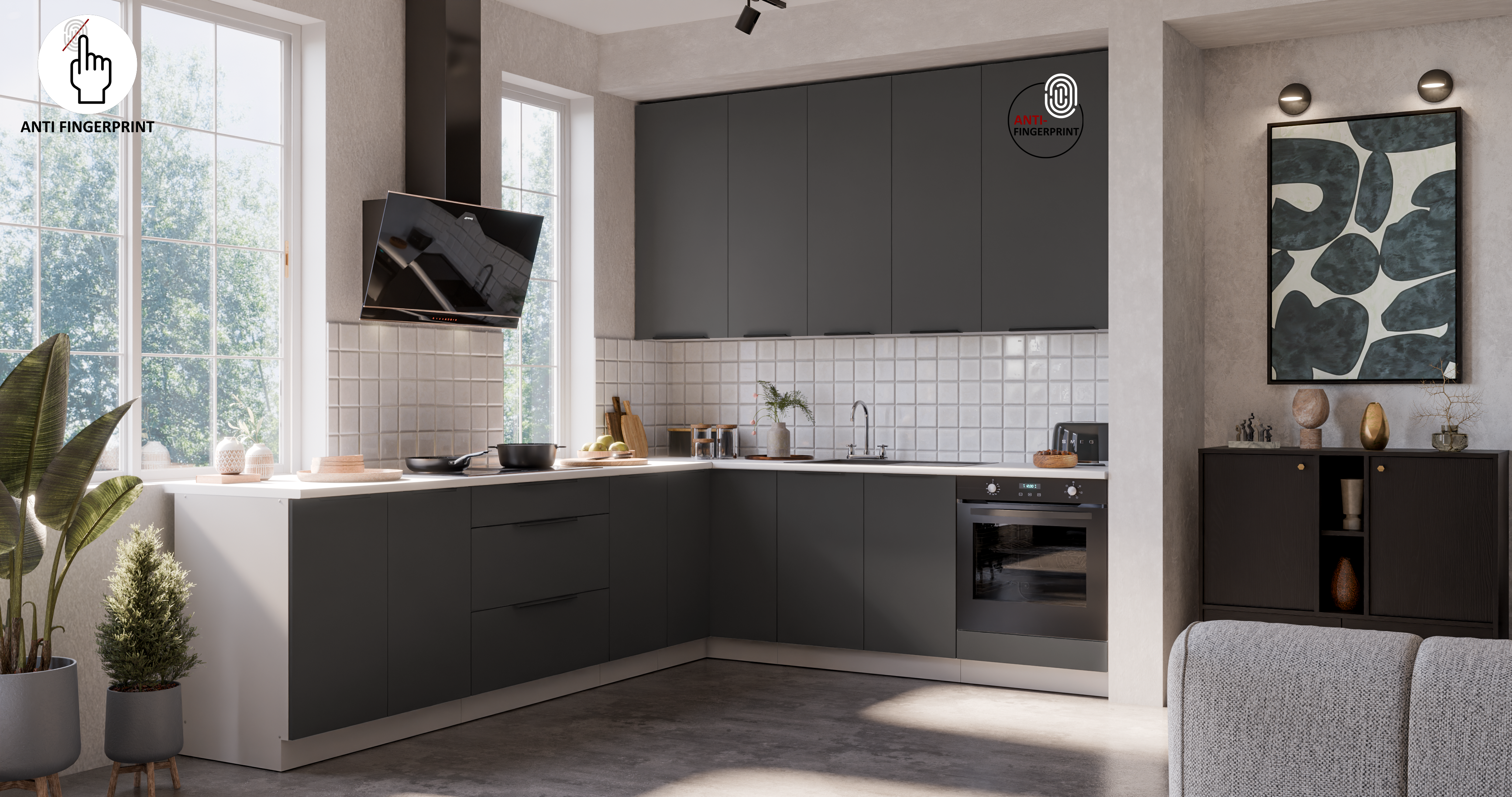 Sve ladice i fronte kuhinjskog sastava Aria opremljene su sustavom za tiho zatvaranje. Ovaj mehanizam sprječava naglo zatvaranje vrataca i smanjuje buku, što značajno povećava udobnost korištenja. Takvo rješenje idealno je za otvorene tlocrtne prostore, gdje se kuhinja povezuje s dnevnim boravkom, jer održava mirnu i ugodnu atmosferu čak i tijekom kuhanja ili pospremanja.