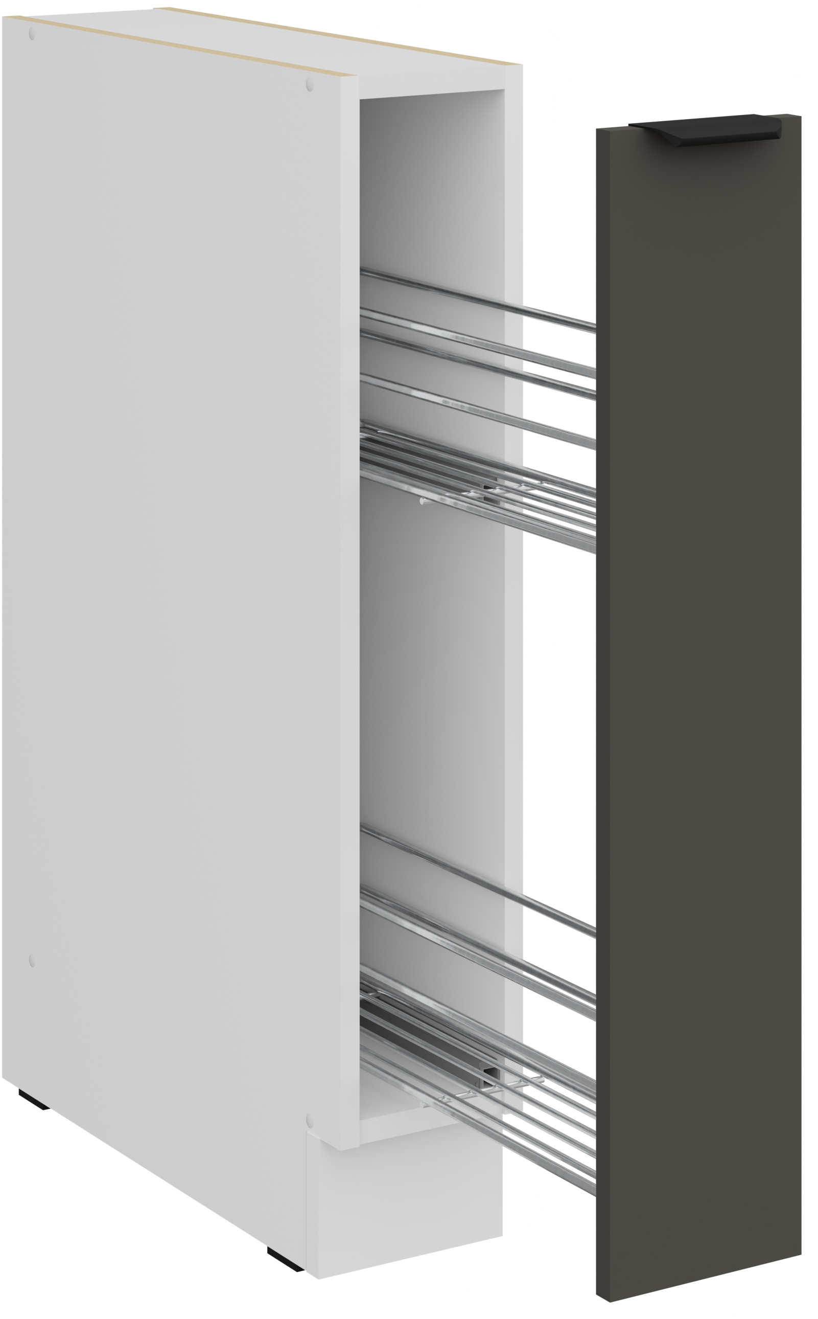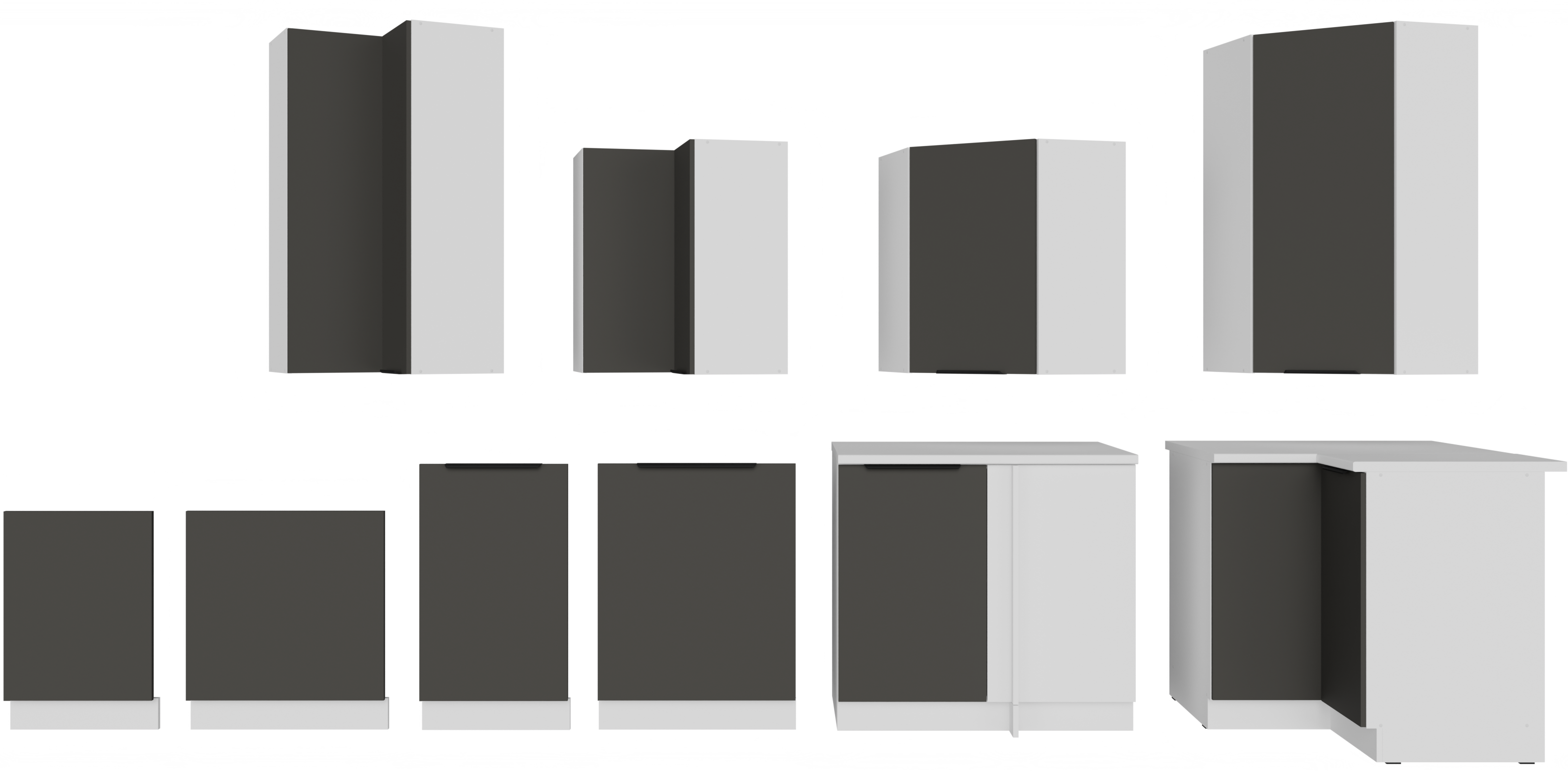 Kuhinjski sastav Aria dizajniran je modularno, što znači da ga je moguće prilagoditi različitim prostornim ograničenjima i potrebama. Iako osnovna izvedba ne sadrži rastezljivi stol, omogućuje kombiniranje s drugim namještajem u istom stilu. Siva i bijela boja zajedno stvaraju svijetao i prostran dojam, pa je sastav posebno prikladan za manje kuhinje ili otvorene stambene prostore, gdje svjetlost i prostranost igraju ključnu ulogu.