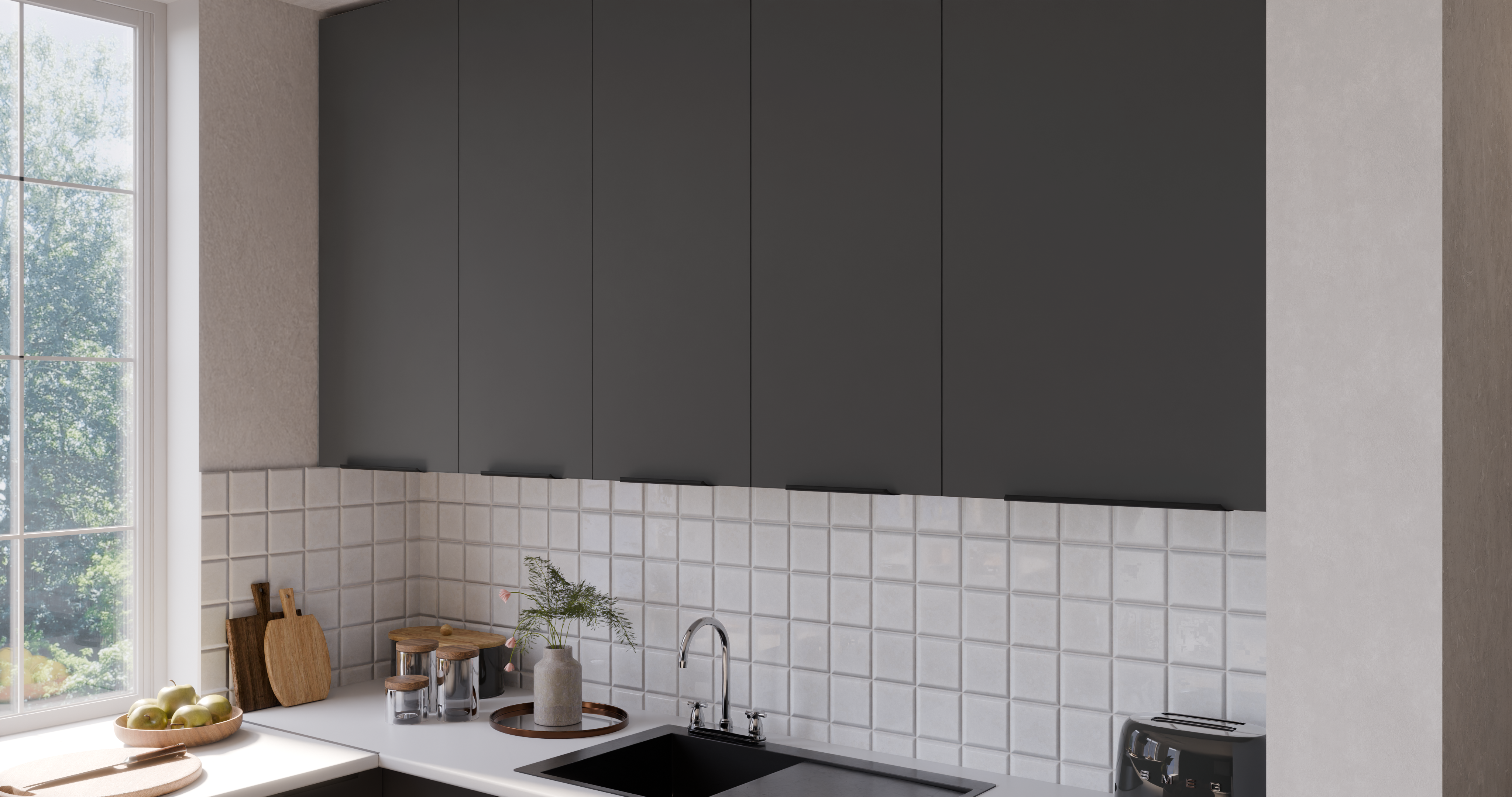 Ručke Edge UA-HEXA od crno-aluminijskog materijala dodaju dašak modernosti te naglašavaju elegantne linije elemenata. Razmaci između ručki, koji se kreću od 64 mm do 320 mm, ergonomski su dizajnirani i omogućuju udobno otvaranje vrataca i ladica.