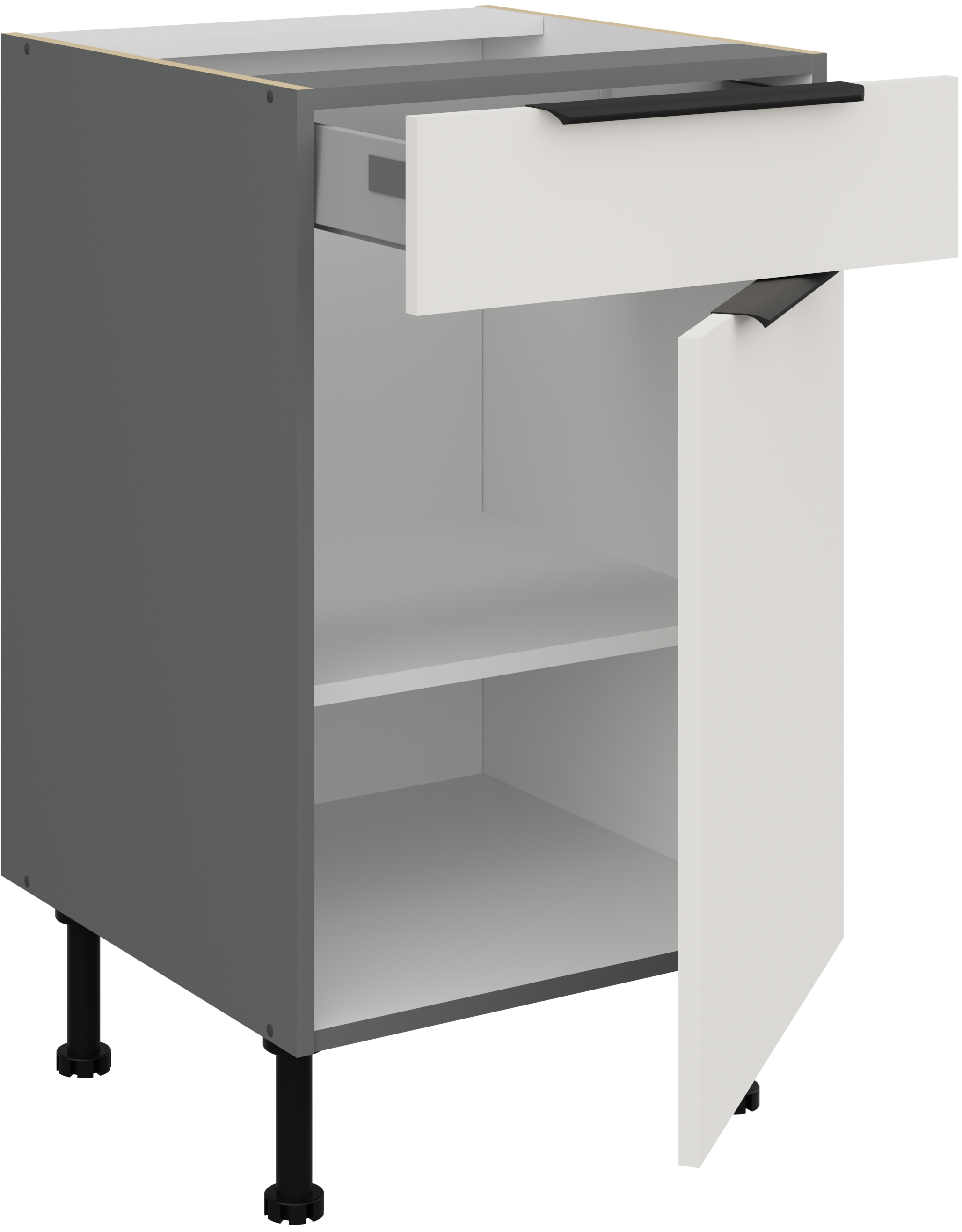 Kućište i fronte kuhinjskog sastava Aria izrađeni su od kvalitetnog iverala, poznatog po svojoj stabilnosti i jednostavnom održavanju. Površine su zaštićene od prašine, topline i vlage, što omogućuje dugotrajno korištenje bez vidljivog trošenja. Laminirana ploča debljine 16 mm osigurava čvrstoću, a pritom zadržava lakoću koja olakšava montažu i premještanje elemenata. U kompletu ćete primijetiti i promišljeno odabrane detalje, poput ručki Edge UA-HEXA u kombinaciji crne i aluminijske boje, koje nadopunjuju moderan izgled i pružaju ergonomski komfor pri svakodnevnoj upotrebi.