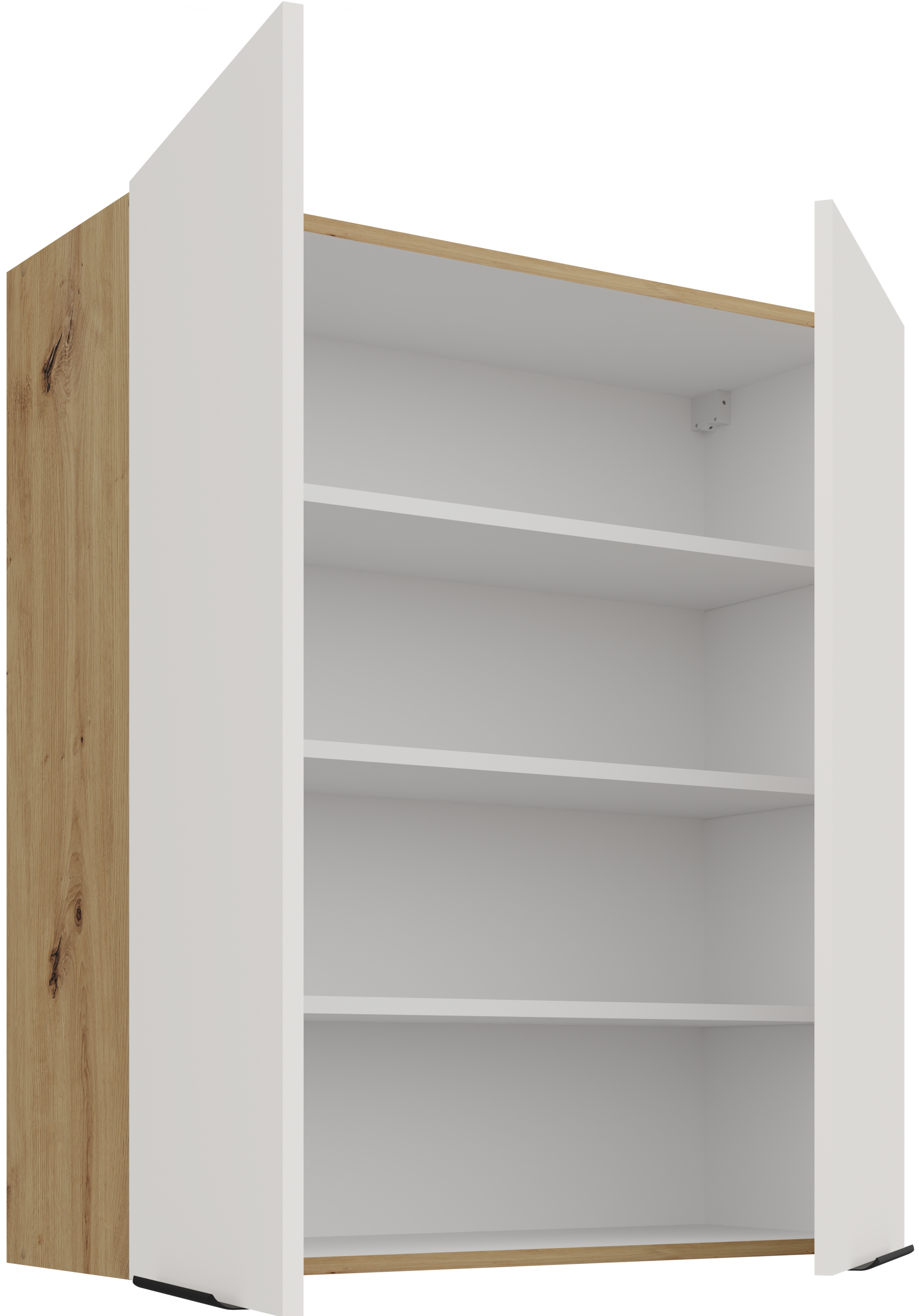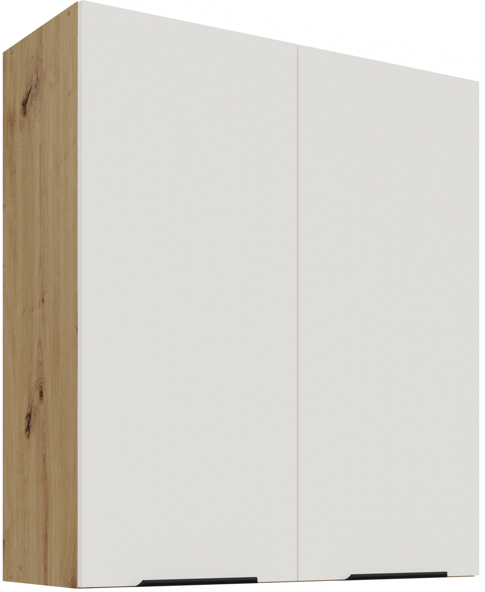 Osnova kuhinjskog seta Aria je okvir od iverala, što znači stabilnu konstrukciju i dobru otpornost na opterećenja. Površine su obrađene kvalitetnom laminacijom koja štiti od vlage i mehaničkih oštećenja. Kombinacija bijele boje i nijanse artisan hrasta stvara ugodan kontrast između svijetlih i prirodnih tonova, što prostoru daje osjećaj topline i prozračnosti.