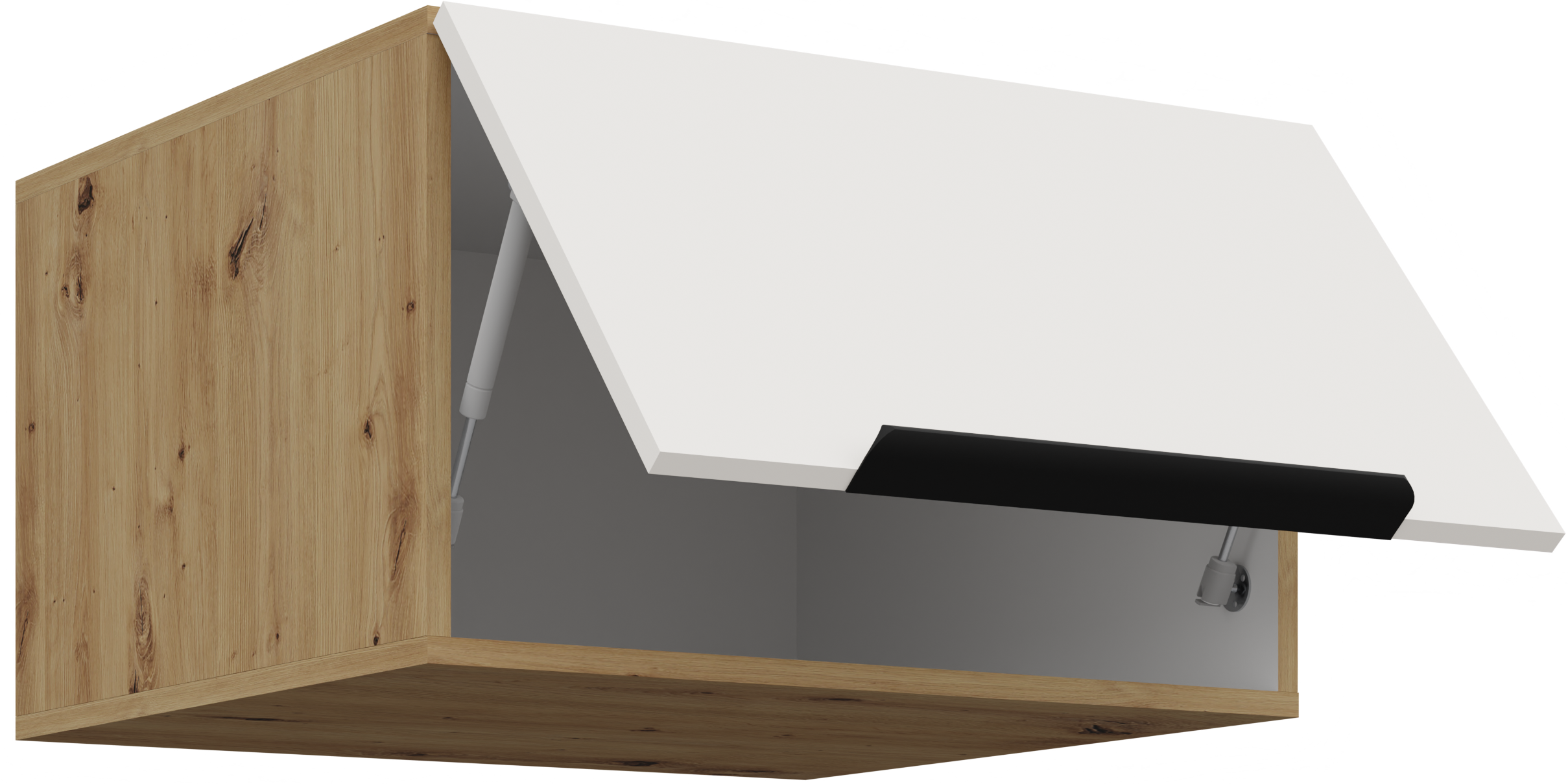 Osnova kuhinjskog sastava Aria je okvir od iverala, što znači stabilnu konstrukciju i dobru otpornost na opterećenja. Površine su obrađene kvalitetnom laminacijom koja štiti od vlage i mehaničkih oštećenja. Kombinacija bijele boje i nijanse artisan hrasta stvara ugodan kontrast između svijetlih i prirodnih tonova, što prostoru dodaje osjećaj topline i prozračnosti.