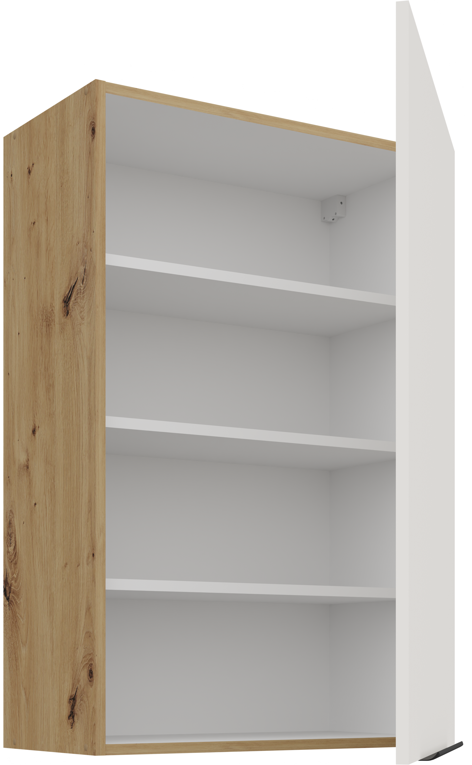 Osnova kuhinjskog seta Aria je okvir od iverala, što znači stabilnu konstrukciju i dobru otpornost na opterećenja. Površine su obrađene kvalitetnom laminacijom koja štiti od vlage i mehaničkih oštećenja. Kombinacija bijele boje i nijanse artisan hrasta stvara ugodan kontrast između svijetlih i prirodnih tonova, što prostoru daje osjećaj topline i prozračnosti.