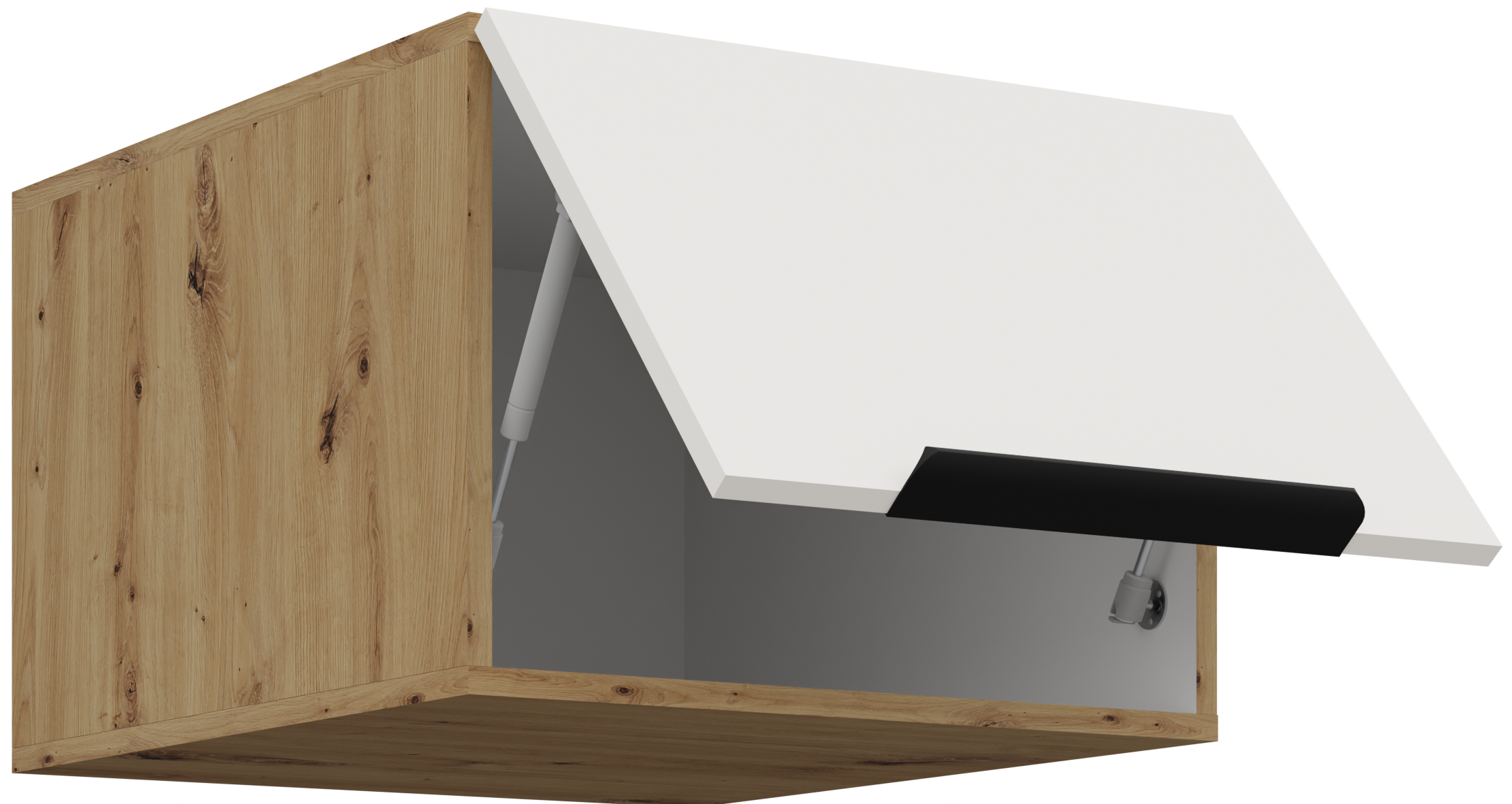 Osnova kuhinjskog seta Aria je okvir od iverala, što znači stabilnu konstrukciju i dobru otpornost na opterećenja. Površine su obrađene kvalitetnom laminacijom koja štiti od vlage i mehaničkih oštećenja. Kombinacija bijele boje i nijanse artisan hrasta stvara ugodan kontrast između svijetlih i prirodnih tonova, što prostoru daje osjećaj topline i prozračnosti.