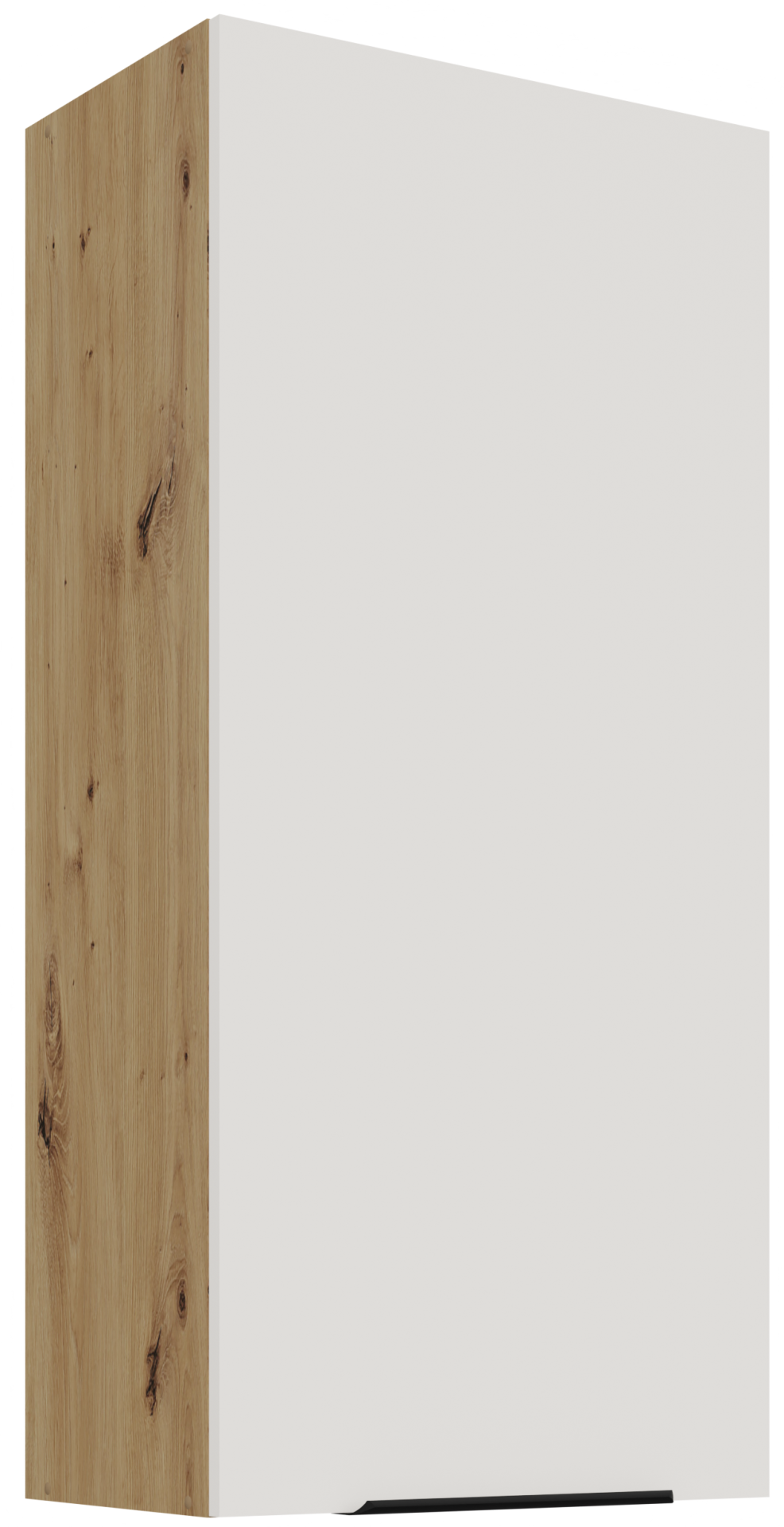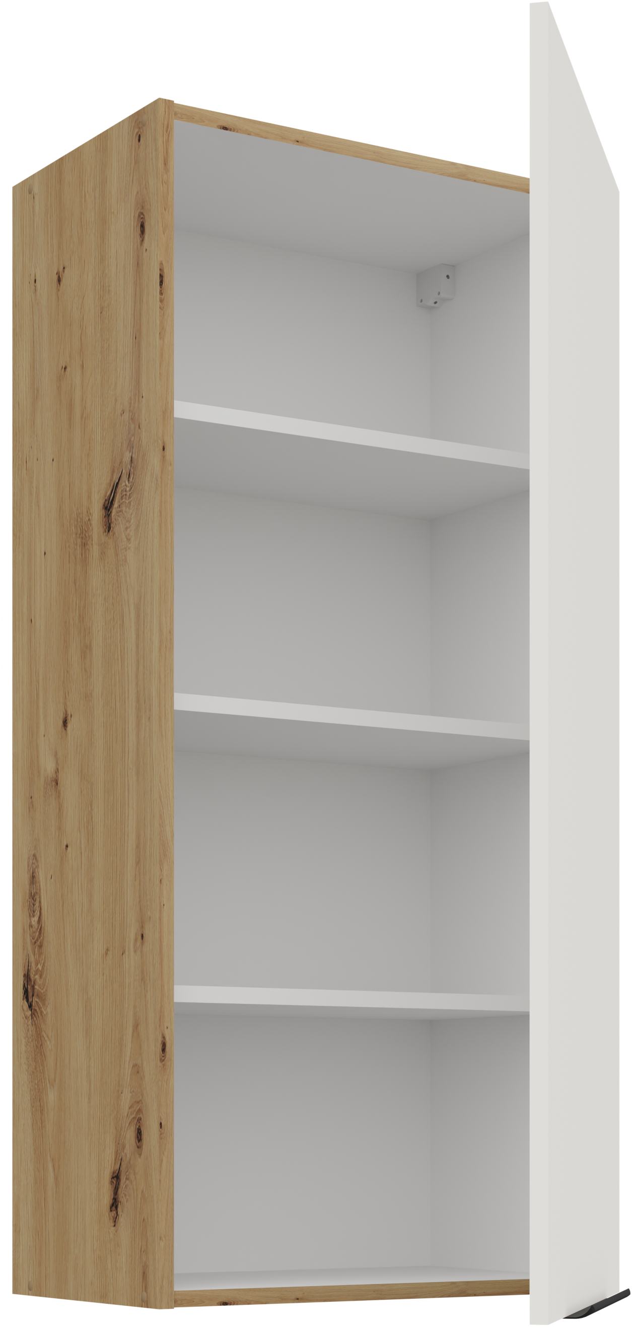 Osnova kuhinjskog sastava Aria je okvir od iverala, što znači stabilnu konstrukciju i dobru otpornost na opterećenja. Površine su obrađene kvalitetnom laminacijom koja štiti od vlage i mehaničkih oštećenja. Kombinacija bijele boje i nijanse artisan hrasta stvara ugodan kontrast između svijetlih i prirodnih tonova, što prostoru daje osjećaj topline i prozračnosti.