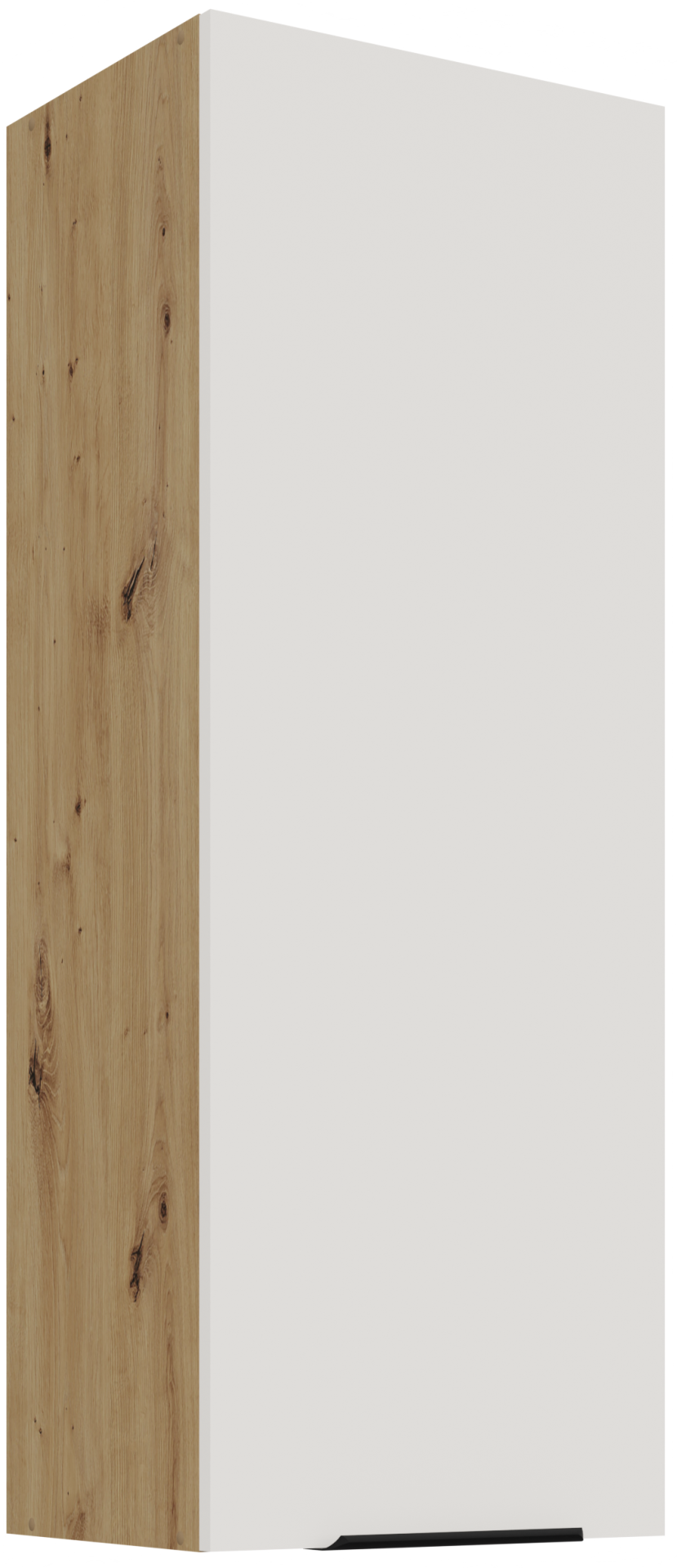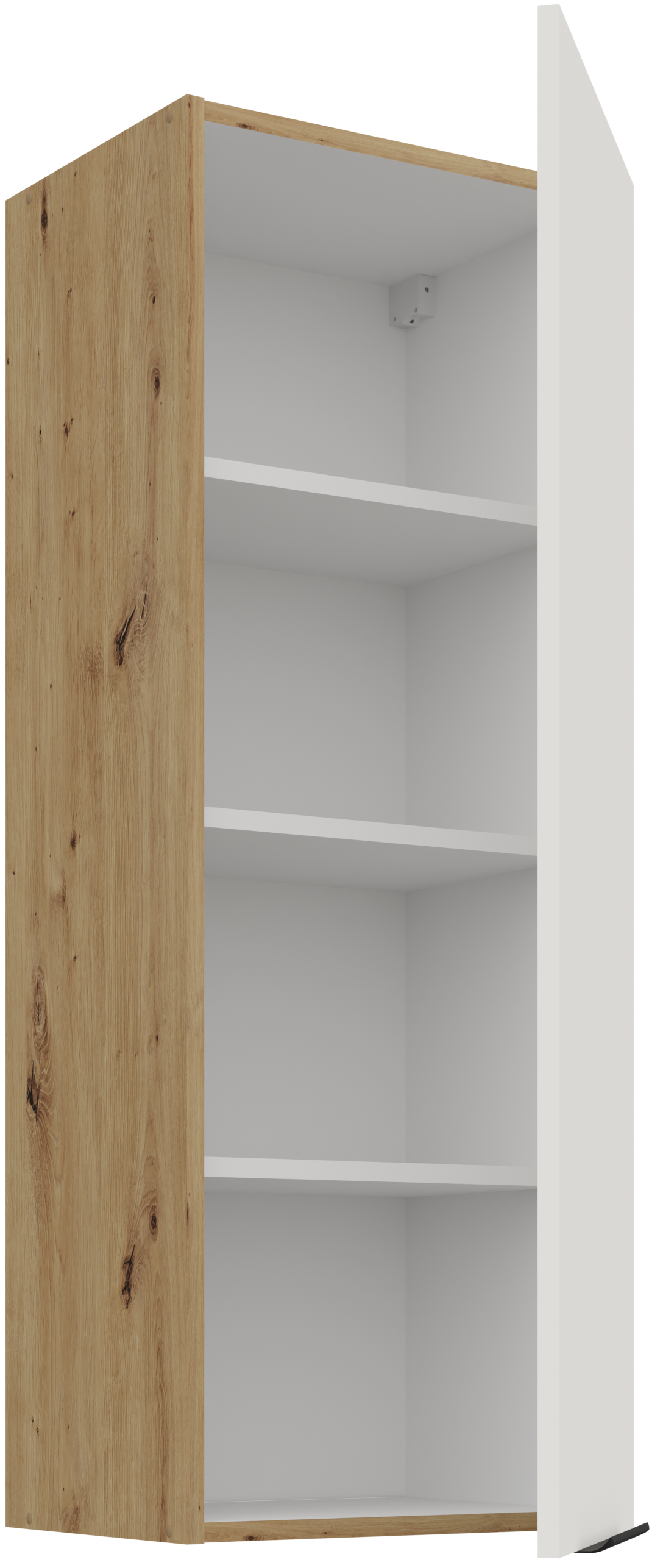 Osnova kuhinjskog sastava Aria je okvir od iverala, što znači stabilnu konstrukciju i dobru otpornost na opterećenja. Površine su obrađene kvalitetnom laminacijom, koja štiti od vlage i mehaničkih oštećenja. Kombinacija bijele boje i nijanse artisan hrasta stvara ugodan kontrast između svijetlih i prirodnih tonova, što prostoru daje osjećaj topline i prozračnosti.