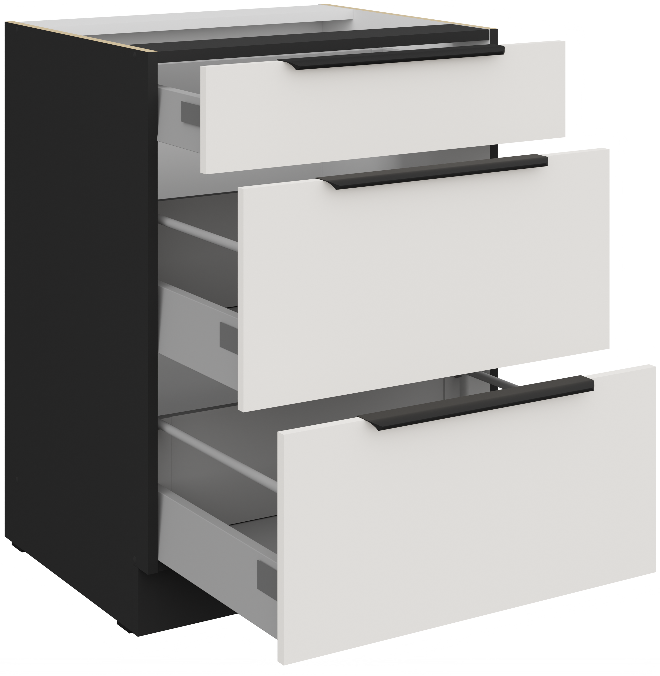 Kuhinjski set Aria u elegantnoj kombinaciji bijele i crne boje spaja funkcionalnost, suvremenu estetiku i kvalitetnu izradu. Dizajniran je tako da odgovara različitim stilovima unutarnjeg uređenja – od minimalističkih do klasičnih kuhinja. Glavni materijal, laminirana ploča debljine 16 mm, osigurava čvrstoću, stabilnost i dugi vijek trajanja, a istovremeno omogućuje jednostavno čišćenje i održavanje. Ovaj kuhinjski set rezultat je precizne proizvodnje u tvornici Stolarz-Lempert u Poljskoj, gdje je naglasak na kvaliteti i detaljima.