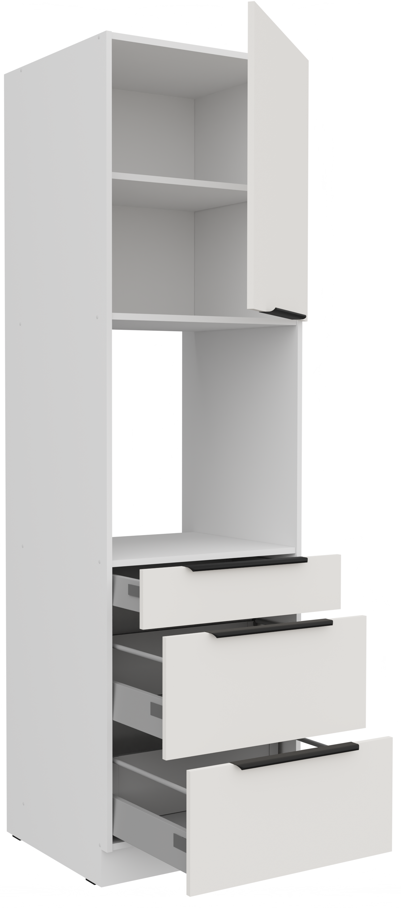 Kuhinjski sastav Aria u bijeloj boji spaja suvremenu estetiku, funkcionalnost i kvalitetnu izradu. Izrađen je od izdržljive laminirane ploče debljine 16 mm, koja osigurava dug vijek trajanja i jednostavno održavanje. Bijela boja kućišta i fronti stvara dojam svjetline i prostranosti, stoga se sastav odlično uklapa i u manje i u veće kuhinje. Kombinacija minimalističkog izgleda i kvalitetnih materijala odražava profinjenost, koja je karakteristična za marku Stolarz-Lempert iz Poljske.