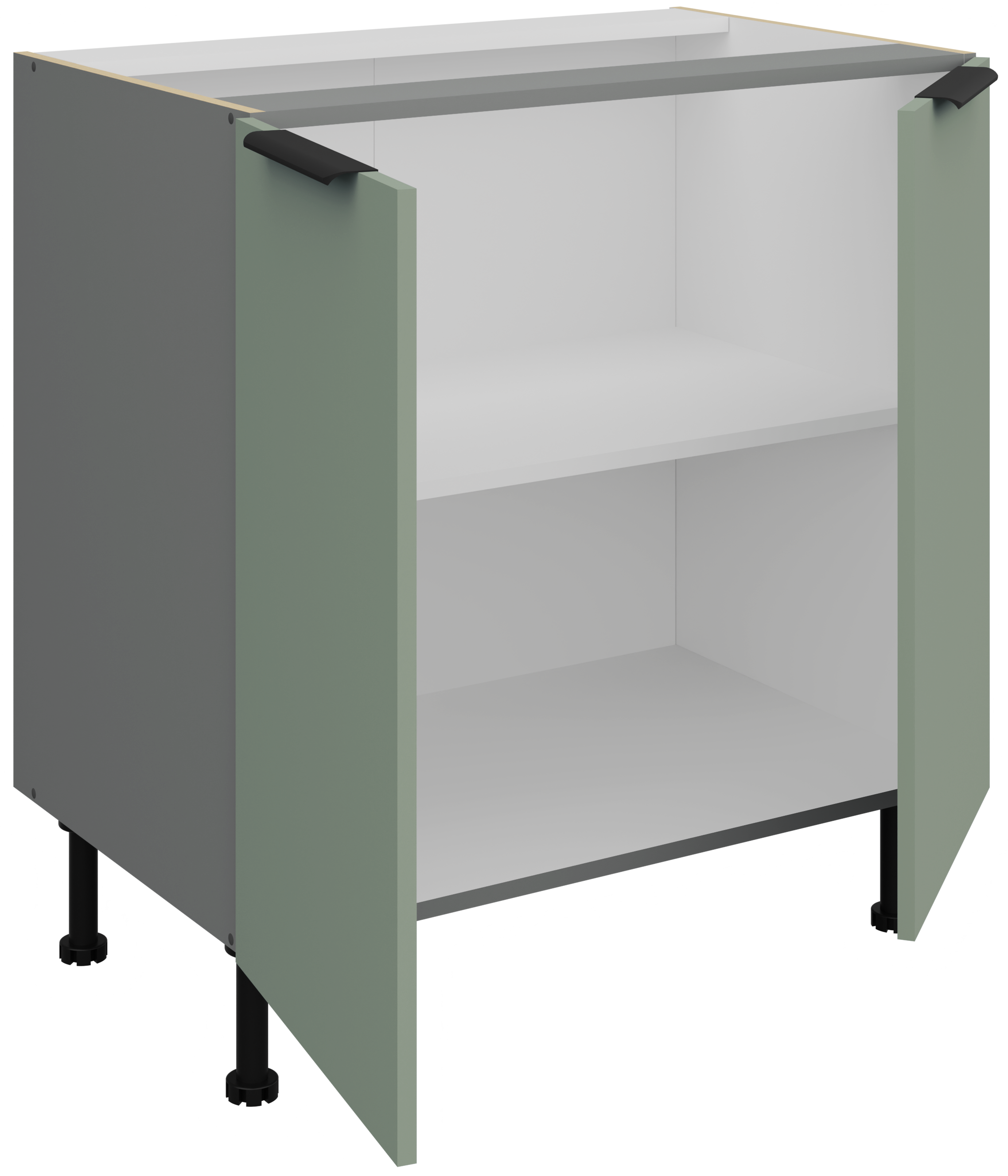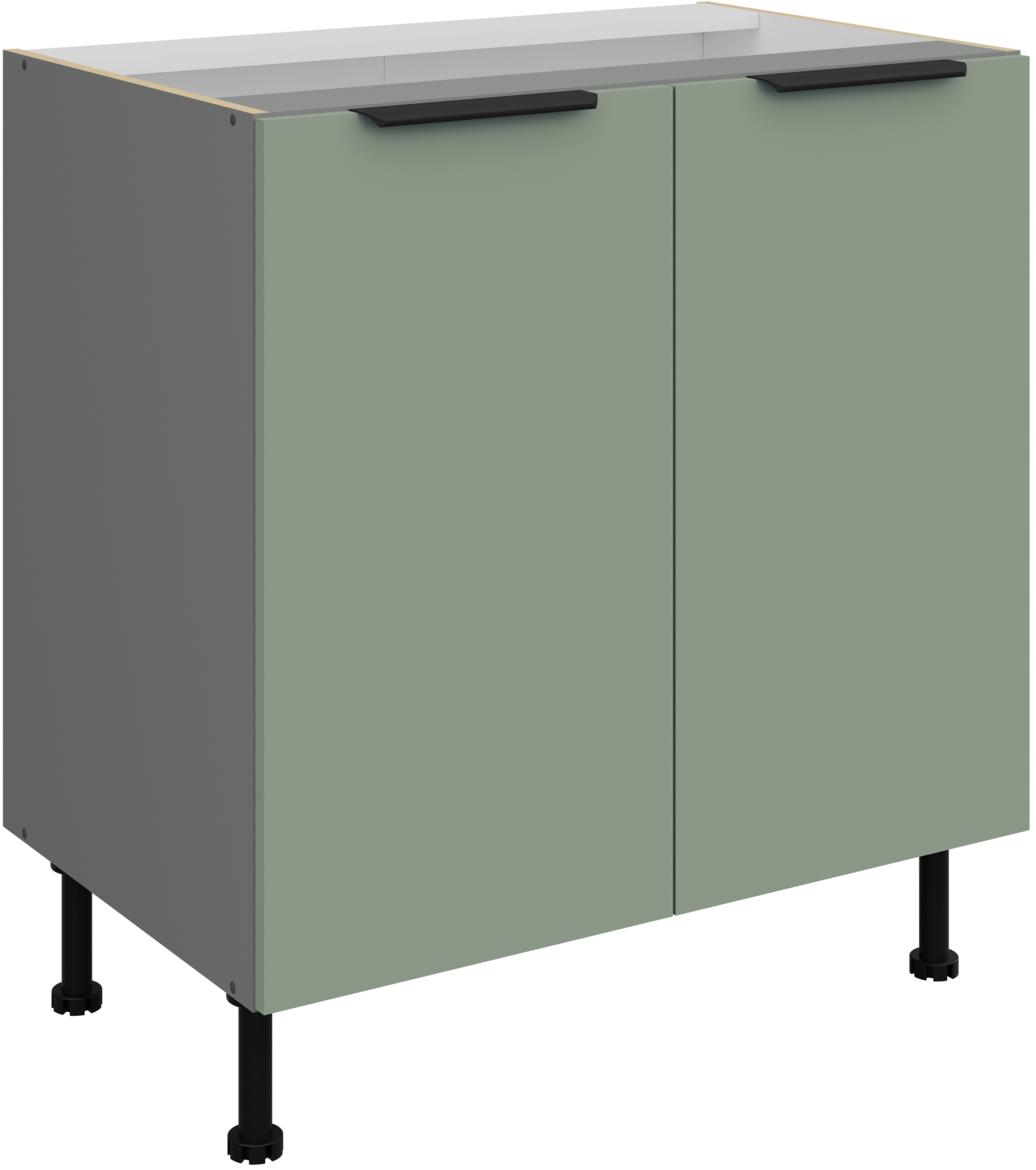 Osnovni materijal kuhinjskog seta Aria je laminirana ploča debljine 16 mm, koja omogućuje čvrstu konstrukciju i otpornost na svakodnevnu uporabu. Površina ploča je glatka i otporna na ogrebotine, što olakšava čišćenje te zadržava izvorni izgled i nakon godina upotrebe. Okvir je izrađen od iverala, što dodatno doprinosi stabilnosti i trajnosti cijele strukture. Svi elementi su precizno obrađeni, a rubovi završeni kvalitetnom trakom koja sprječava prodor vlage.