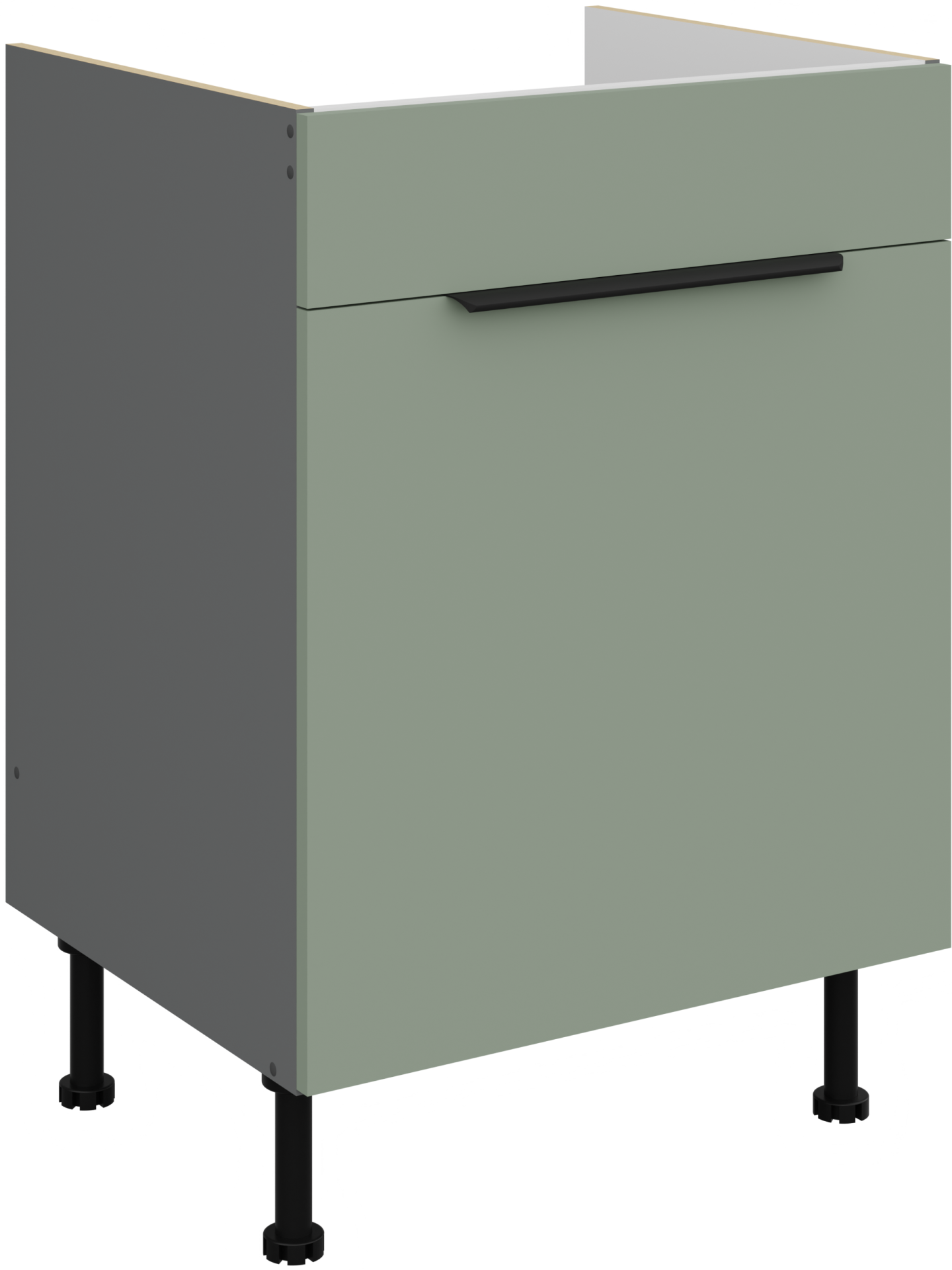 Osnovni materijal kuhinjskog sastava Aria je laminirana ploča debljine 16 mm, koja omogućuje čvrstu konstrukciju i otpornost na svakodnevnu upotrebu. Površina ploča je glatka i otporna na ogrebotine, što olakšava čišćenje te zadržava izvorni izgled i nakon godina korištenja. Okvir je izrađen od iverala, što dodatno pridonosi stabilnosti i trajnosti cijele strukture. Svi elementi su precizno obrađeni, a rubovi završeni kvalitetnom trakom koja sprječava prodor vlage.