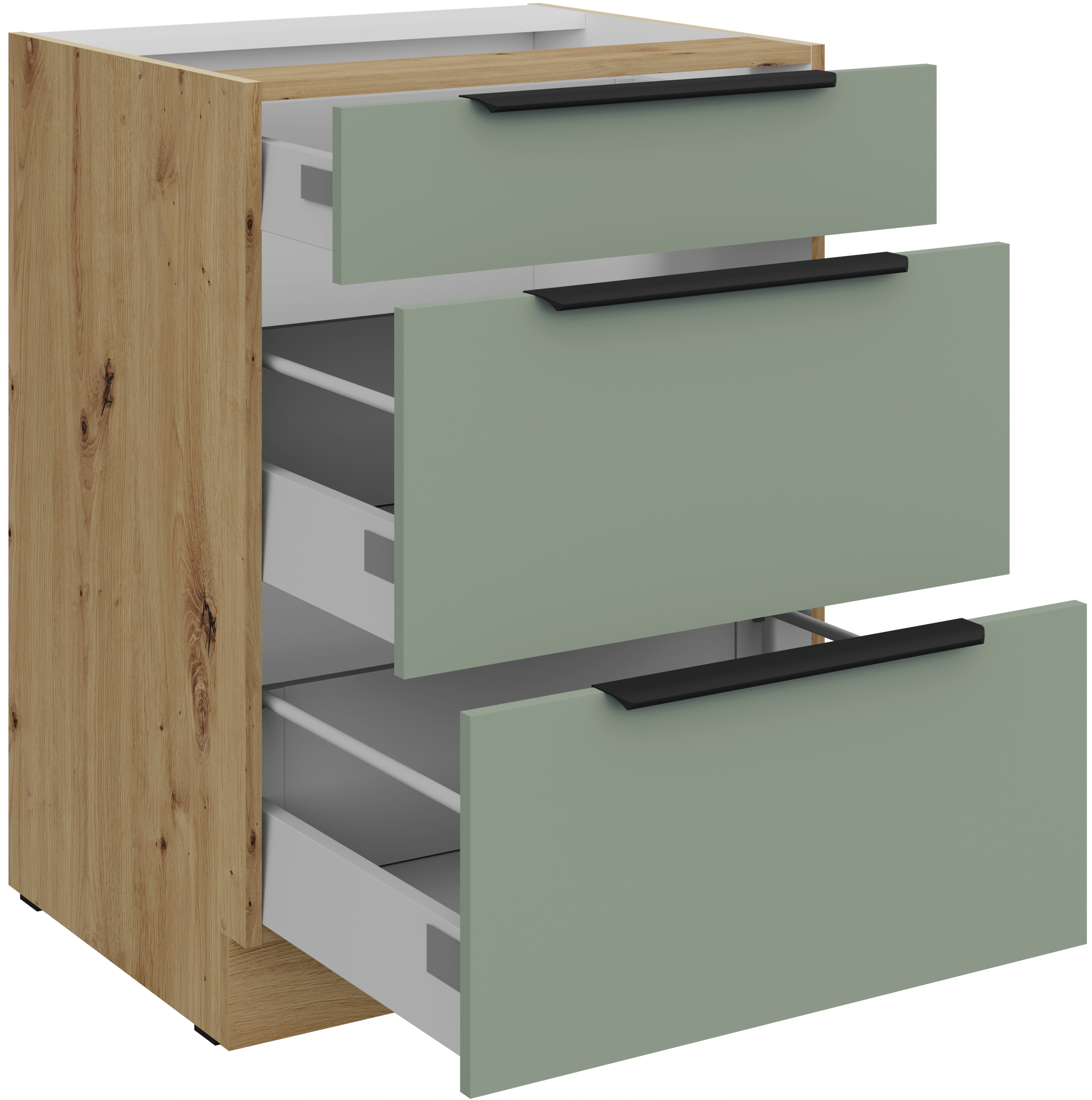Boja proizvoda – zelena u kombinaciji s drvenim tonom artisan hrasta – prostoru unosi osjećaj prirodnosti i svježine. Takva kombinacija boja djeluje umirujuće i izvrsno se uklapa u različite stilove unutarnjeg uređenja, od minimalističkih do klasičnih kuhinja. Sastav Aria može se nadopuniti različitim kućanskim aparatima i dodacima, što omogućuje stvaranje individualno prilagođenog ambijenta.