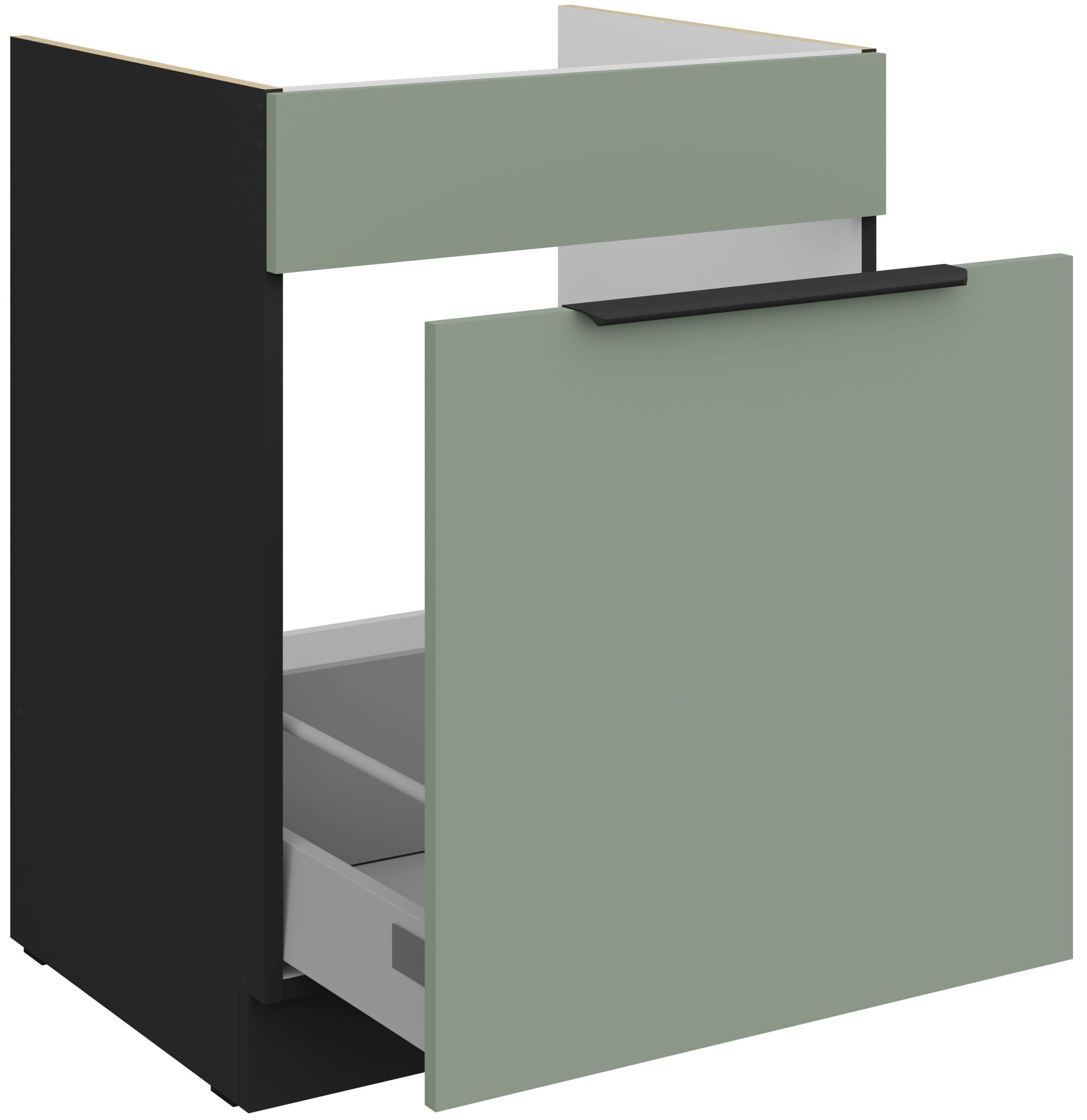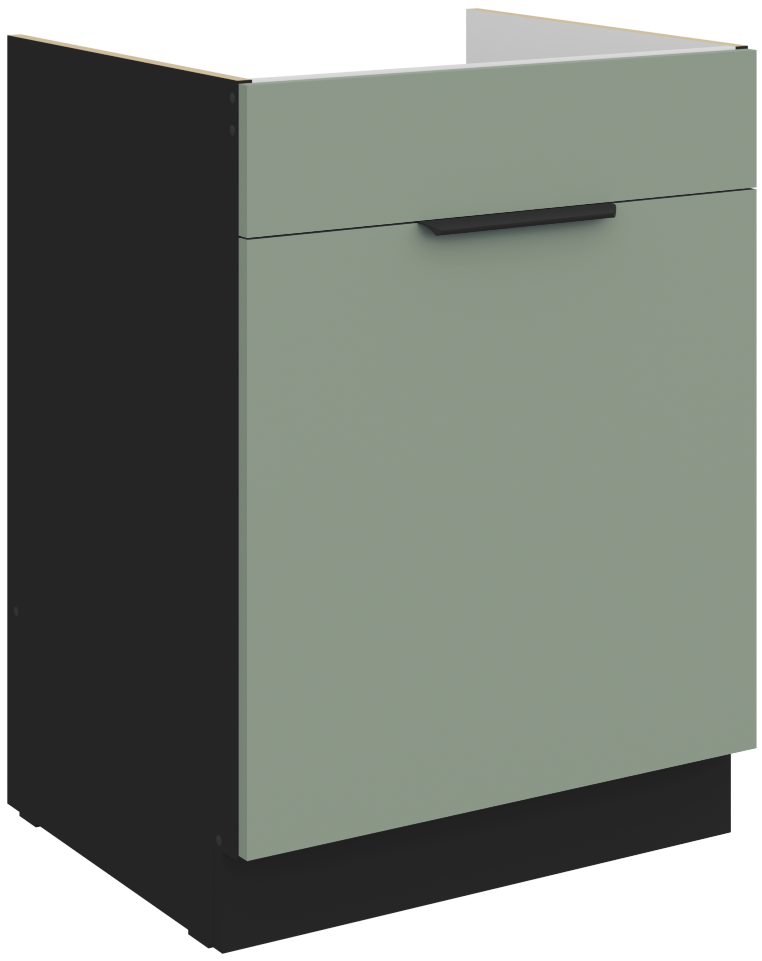 Radna ploča s oznakom 38‑6499 marmor roma osigurava elegantan završetak cjeline. Uzorak mramora lijepo se slaže s kolor frontama i dodaje dašak prestiža. Površina je otporna na vlagu i jednostavna za čišćenje, što omogućuje bezbrižnu pripremu hrane. Kuhinjski elementi opremljeni su estetski i praktično oblikovanim ručkama edge UA‑HEXA od crno‑aluminijske legure. Ručke su dostupne u različitim razmacima – od 64 mm do 320 mm – što omogućuje usklađenost s različitim veličinama vrata i ladica.