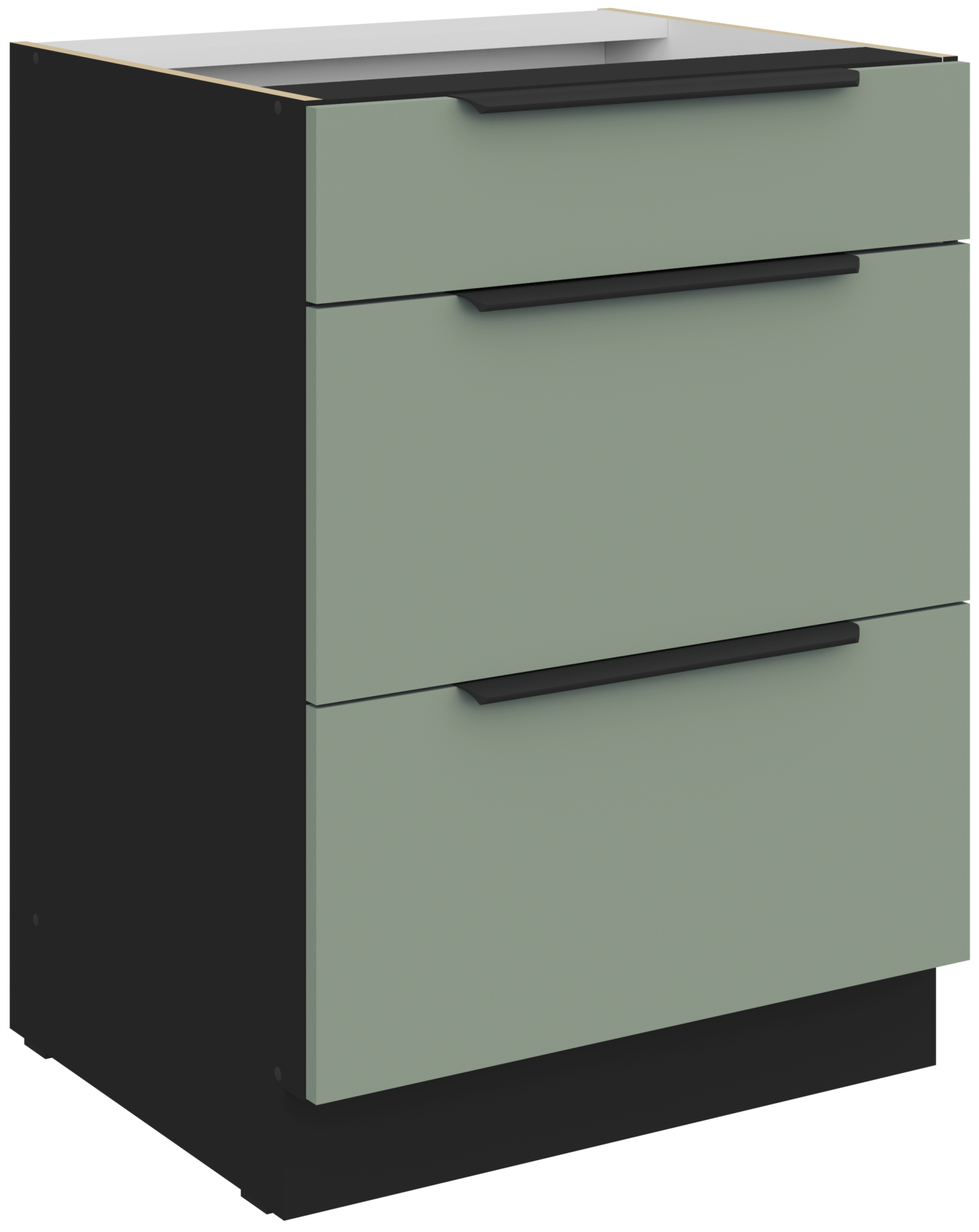 Osnova kuhinje Aria izrađena je od laminirane ploče, poznate po otpornosti na habanje i jednostavnom održavanju. Površina u nijansi aquamarine donosi svjež, a istodobno smiren izgled, koji nadopunjuje kontrastna tekstura artisan hrasta. Ova kombinacija boja i uzoraka stvara ugodan vizualni učinak između topline drva i hladnog tona plavozelene boje, što omogućuje jednostavno usklađivanje s različitim kuhinjskim dodacima i podnim oblogama.