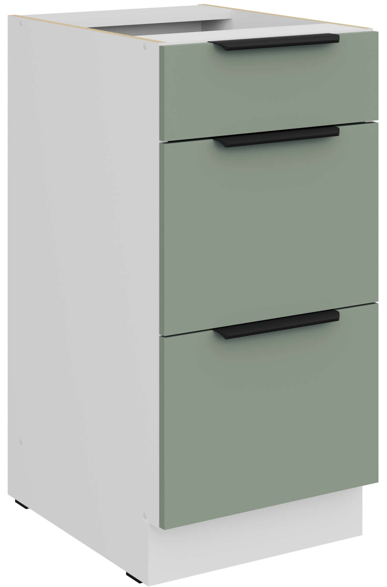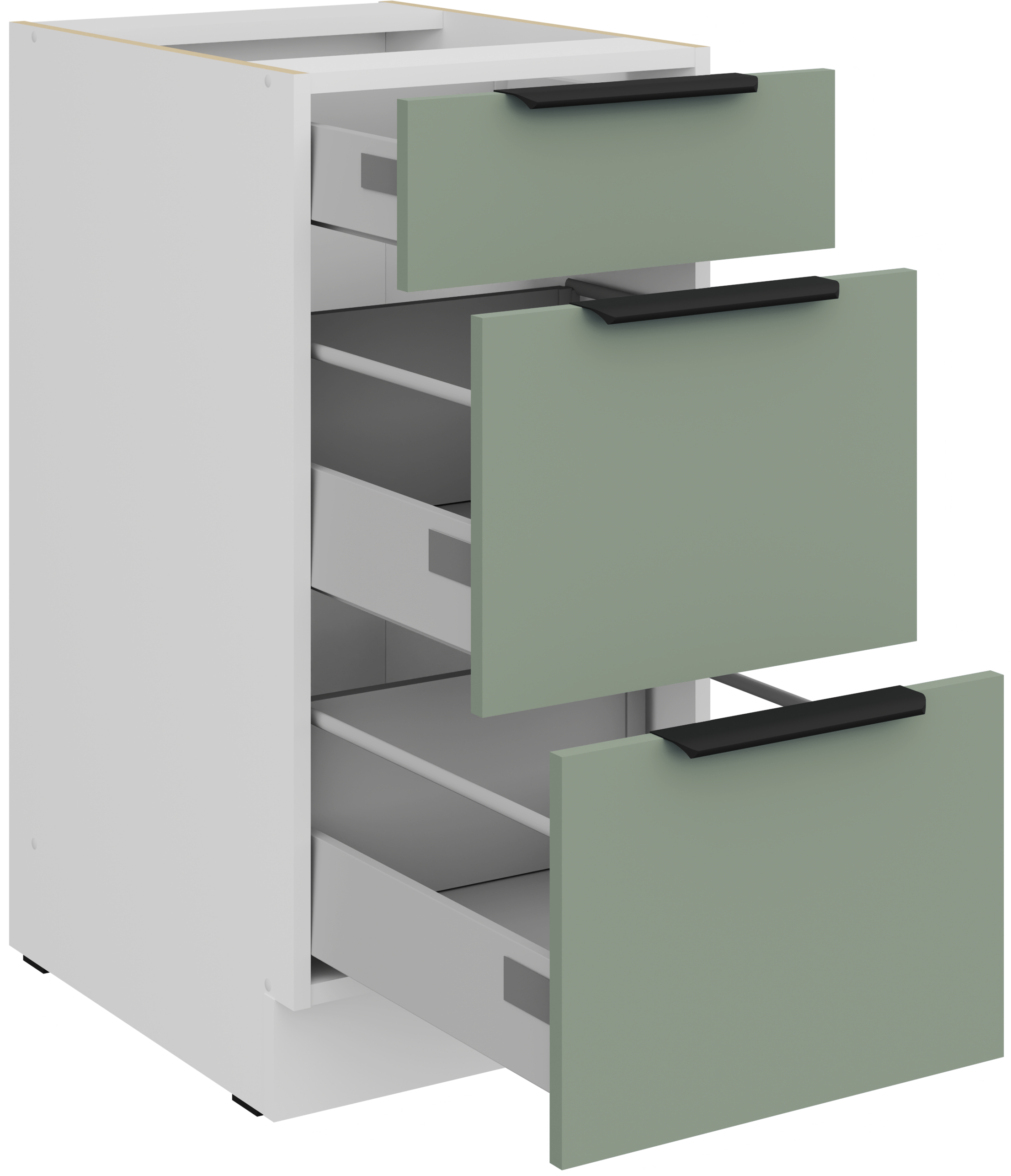 Osnova kuhinjskog sastava je okvir od iverice, što osigurava konstrukcijsku stabilnost i otpornost na svakodnevna opterećenja. Površina od laminirane ploče debljine 16 mm otporna je na ogrebotine, mrlje i toplinu, što je čini prikladnom za intenzivnu kuhinjsku upotrebu. Sve fronte i ladice opremljene su sustavom za tiho zatvaranje, koji sprječava iznenadne udarce i omogućuje meko zatvaranje vrata. Ovaj mehanizam doprinosi ne samo udobnosti, nego i duljem vijeku trajanja okova.