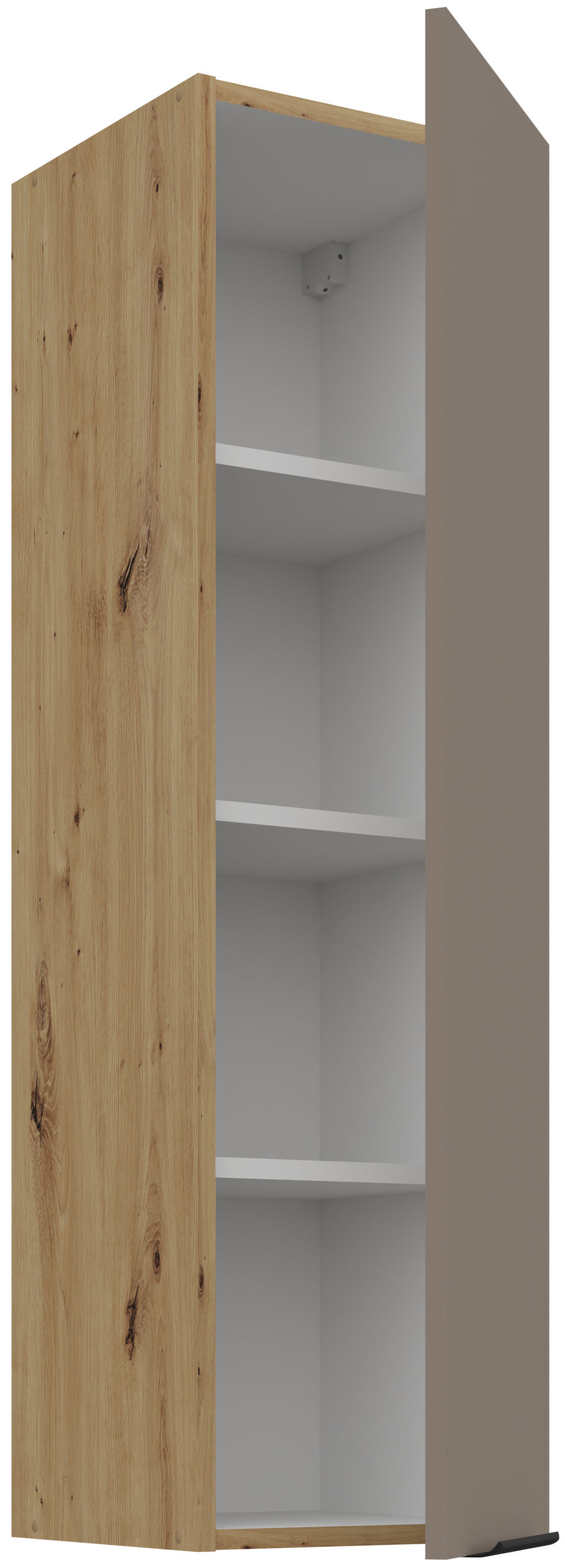Kombinacija nijansi kašmir, sandgrau i artisan hrast stvara ugodan vizualni kontrast koji prostoru daje toplinu i eleganciju. Takav spoj boja posebno je popularan u suvremenim interijerima, gdje prevladava smirena paleta prirodnih tonova. Površine su jednostavne za održavanje – dovoljno je redovito brisanje mekom krpom i blagim sredstvom za čišćenje, čime kuhinja zadržava svoj izgled dugi niz godina.