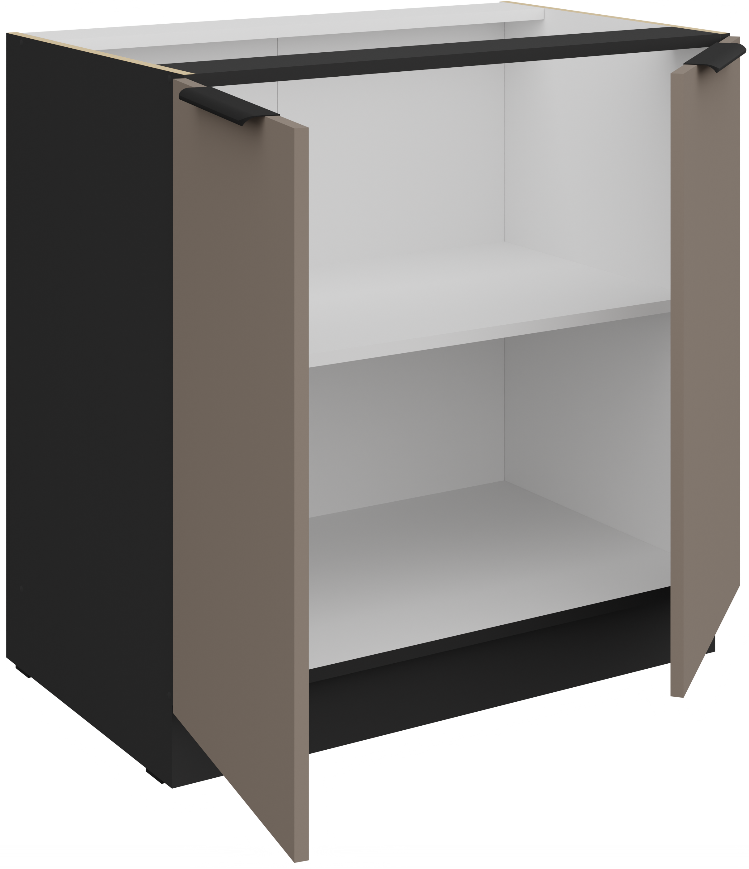Kolor kombinacija sandgrau/crna stvara moderan, a istovremeno topao izgled kuhinje. Svjetlija nijansa “sandgrau” donosi osjećaj prostranosti i svježine, dok crni naglasci dodaju profinjen kontrast i eleganciju. Takva kombinacija izvrsno se uklapa s različitim vrstama podnih obloga i kuhinjskih dodataka, pa omogućuje širok spektar unutarnjih postavki i osobnih prilagodbi.