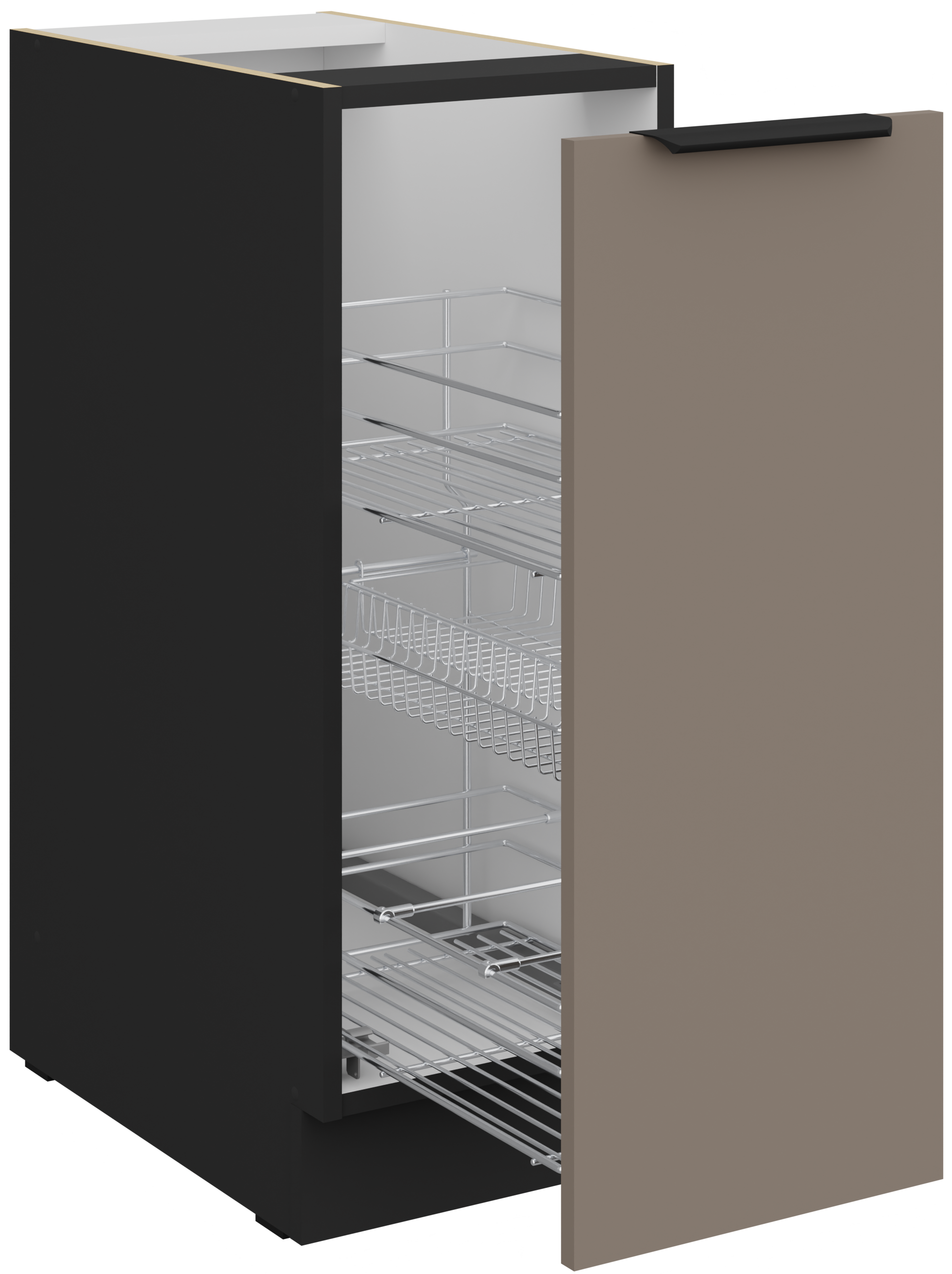 Kuhinjski sastav Aria u kolor kombinaciji sandgrau/crna predstavlja suvremeni pristup oblikovanju kuhinjskog prostora, gdje se estetika i funkcionalnost nadopunjuju u savršenu cjelinu. Izrađen je u priznatoj poljskoj tvornici Stolarz-Lempert, poznatoj po kvalitetnoj obradi materijala i preciznoj izradi namještajnih elemenata. Zbog svog promišljenog dizajna i izdržljivih materijala, ovaj sastav idealan je izbor za svaki dom koji cijeni održivost, praktičnost i eleganciju.