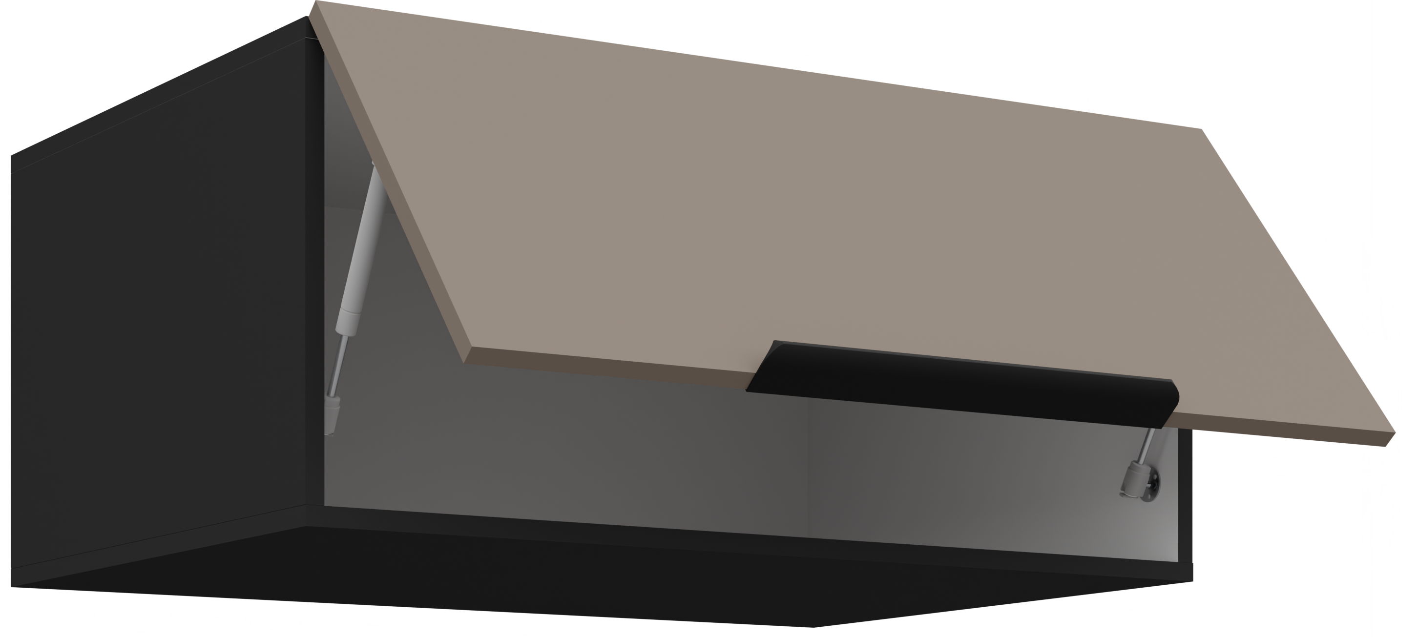 Kolor kombinacija sandgrau/crna stvara moderan, ali istodobno topao izgled kuhinje. Svjetliji ton “sandgrau” donosi osjećaj prostranosti i svježine, dok crni detalji dodaju profinjeni kontrast i eleganciju. Takva kombinacija izvrsno se slaže s različitim vrstama podnih obloga i kuhinjskih dodataka, pa omogućuje širok spektar unutarnjih postavki i osobnih prilagodbi.