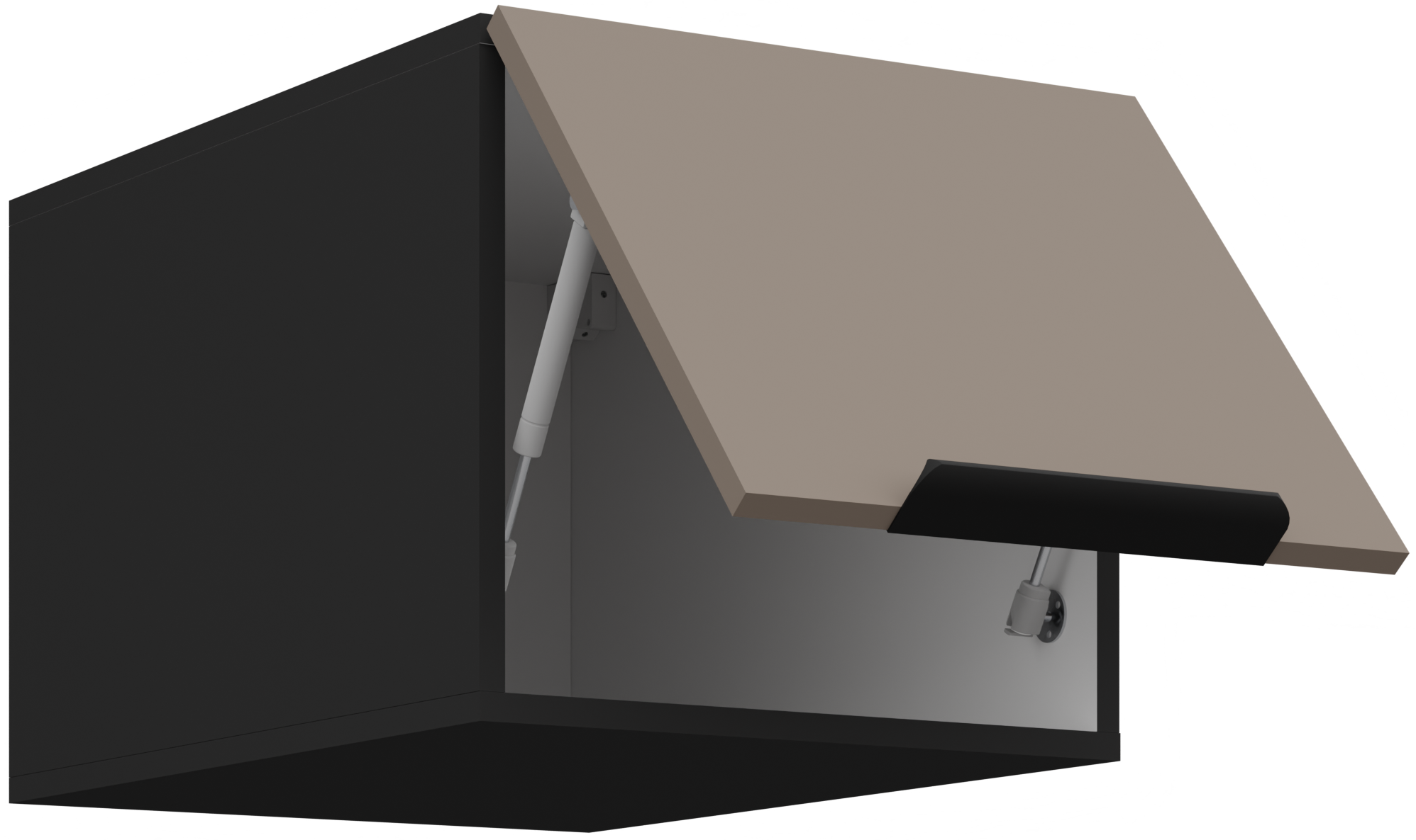 Kolor kombinacija sandgrau/crna stvara moderan, ali istodobno topao izgled kuhinje. Svjetliji ton “sandgrau” donosi osjećaj prostranosti i svježine, dok crni naglasci dodaju profinjen kontrast i eleganciju. Takva kombinacija izvrsno se uklapa s različitim vrstama podnih obloga i kuhinjskih dodataka, omogućujući širok spektar unutarnjih postavki i osobnih prilagodbi.