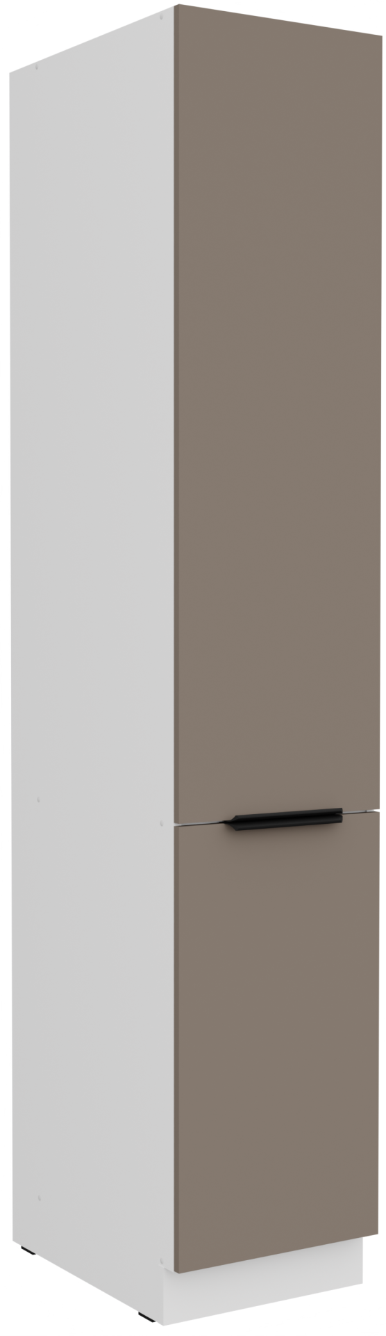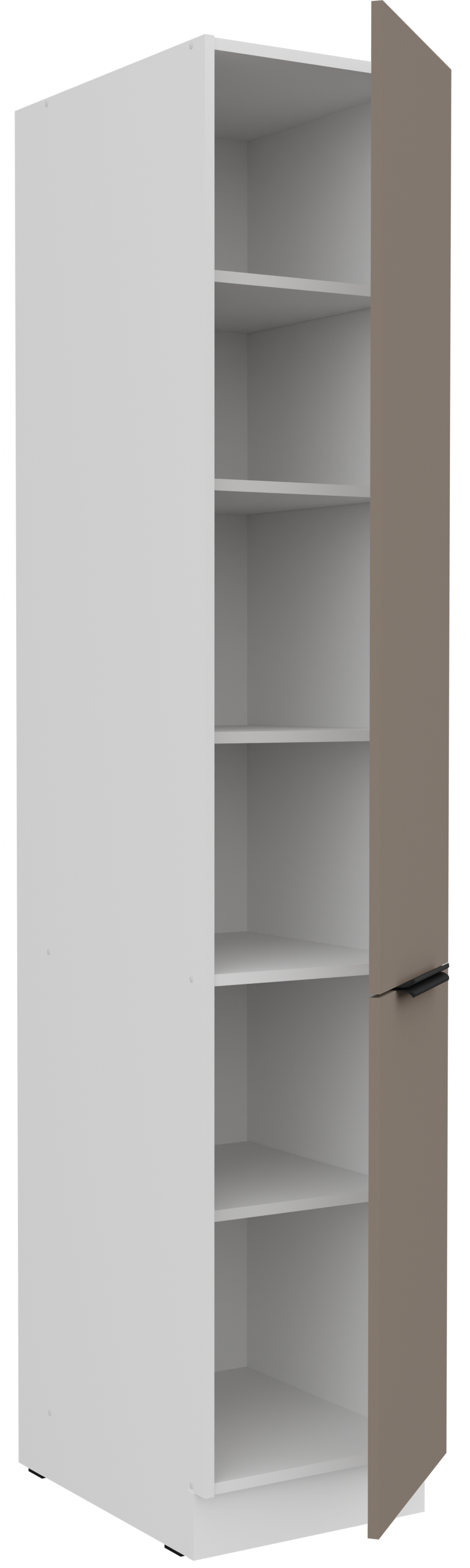 Kombinacija boja sandgrau/bijela (pješčano siva i bijela) stvara svijetao, prozračan dojam, a istovremeno dodaje osjećaj topline i čistoće. Takav dizajn omogućuje jednostavno kombiniranje s različitim vrstama dekora, podnih obloga i dodataka. Bijela boja vizualno povećava prostor i stvara dojam urednosti, dok pješčano sivi tonovi dodaju moderan dodir i eleganciju. Ručke edge UA‑HEXA u crno‑aluminijskoj izvedbi minimalističke su, ali istodobno upečatljive, jer spajaju estetiku i praktičnost. Razmak ručki iznosi od 64 mm do 320 mm, što omogućuje udobnu upotrebu svih vrata i ladica.