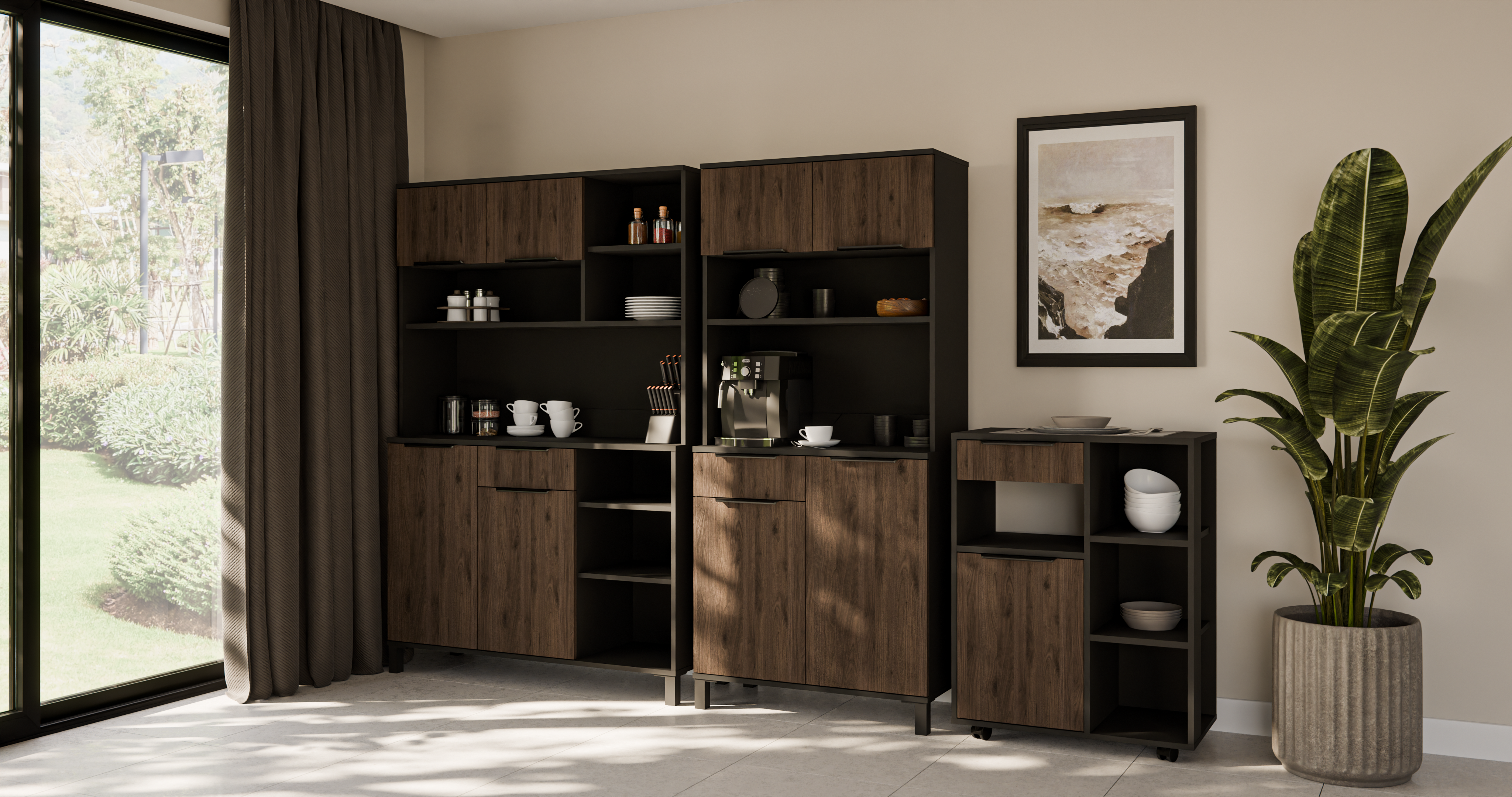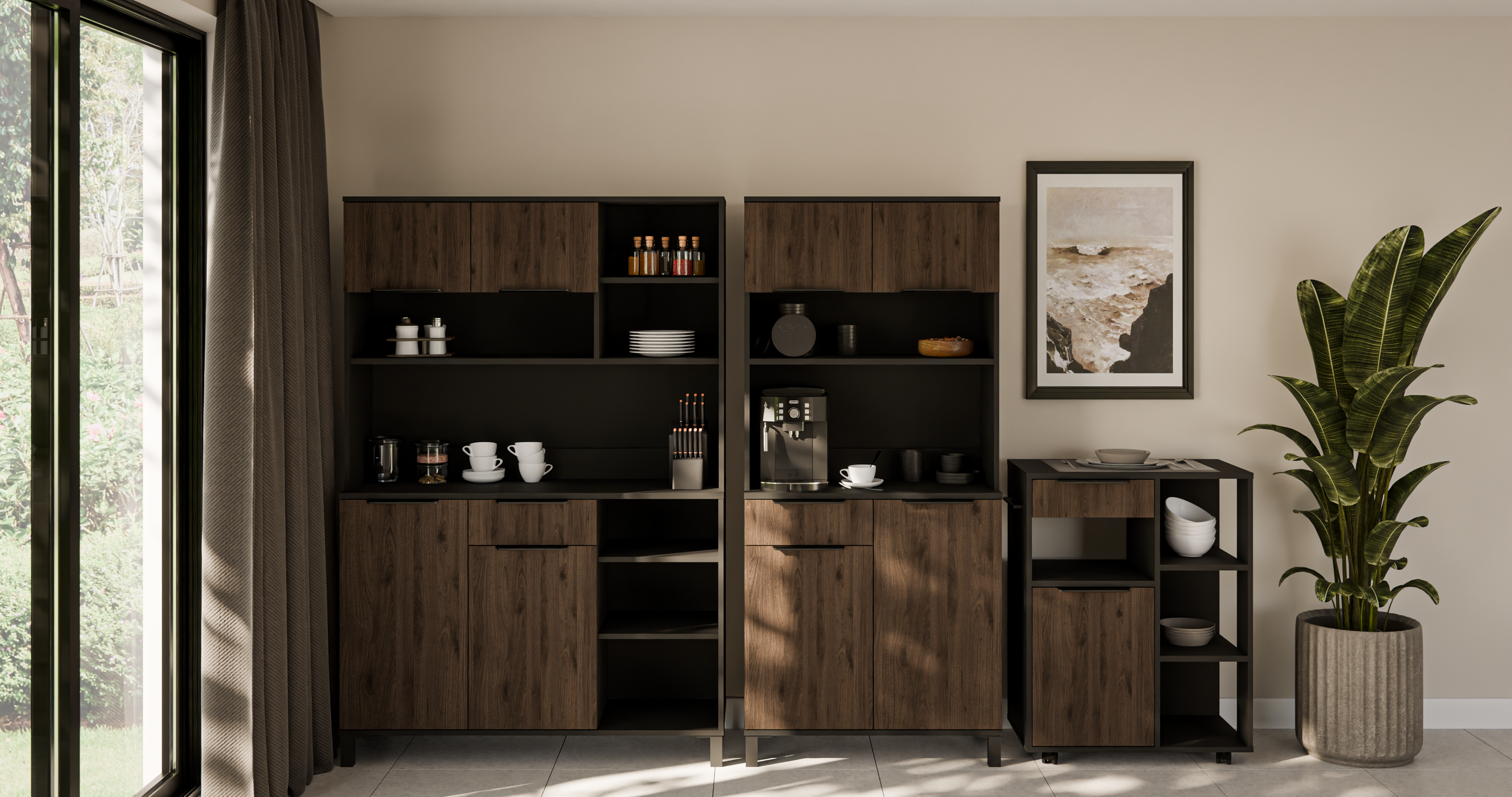 Kuhinjski sastav Monza prikladan je za sve koji traže praktično, estetsko i moderno rješenje za opremanje kuhinje. Laminirana površina omogućuje da se boje i teksture očuvaju i nakon više godina korištenja. Zbog neutralne kombinacije nijansi sastav se lijepo prilagođava različitim kućanskim aparatima i dodacima u metalnim, bijelim ili drvenim tonovima.