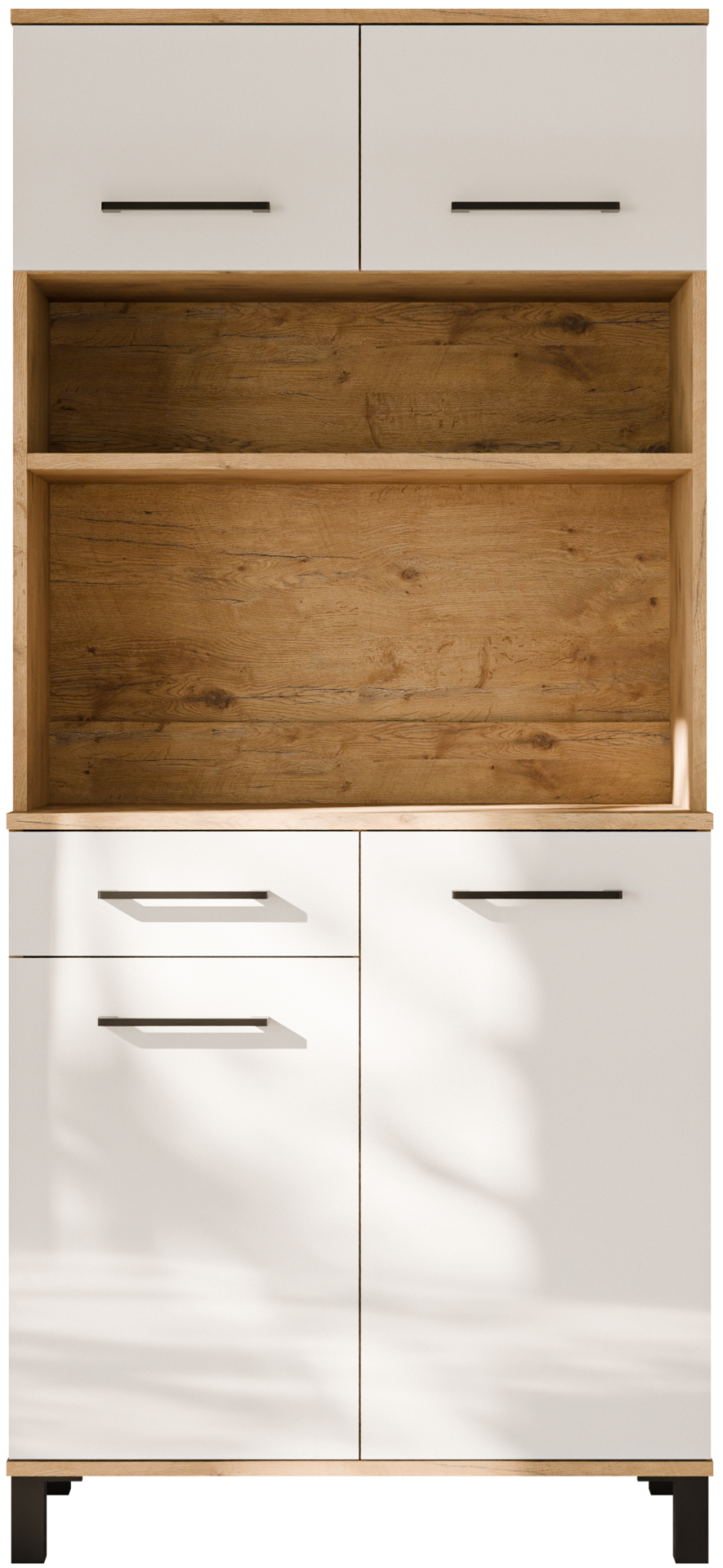 Izgled kuhinjskog sastava Vigo osmišljen je tako da se lako prilagođava različitim stilovima interijera – od minimalističkog do klasičnog. Bijela sjajna površina vizualno povećava prostor i reflektira svjetlost, dok detalji u boji hrasta lancelot stvaraju dojam topline i domaćeg ugođaja. Takva kontrastna kombinacija boja omogućuje jednostavno usklađivanje s ostalim kuhinjskim elementima, podnim oblogama ili dekorativnim dodacima.