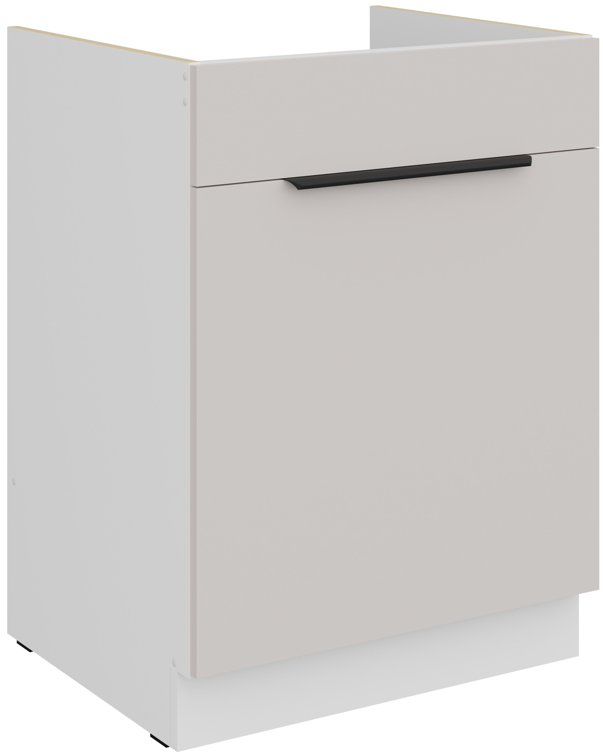 Frontu u toploj boji kašmira nadopunjuje snježno bijeli korpus, što kuhinji daje osjećaj prozračnosti i prostranosti. Laminirana površina otporna je na ogrebotine i jednostavna za čišćenje, stoga je idealna za svakodnevnu upotrebu. Površine zadržavaju svoj izgled i nakon mnogo godina korištenja, jer materijal ne gubi boju i ne deformira se pri uobičajenim temperaturnim promjenama u kuhinji.