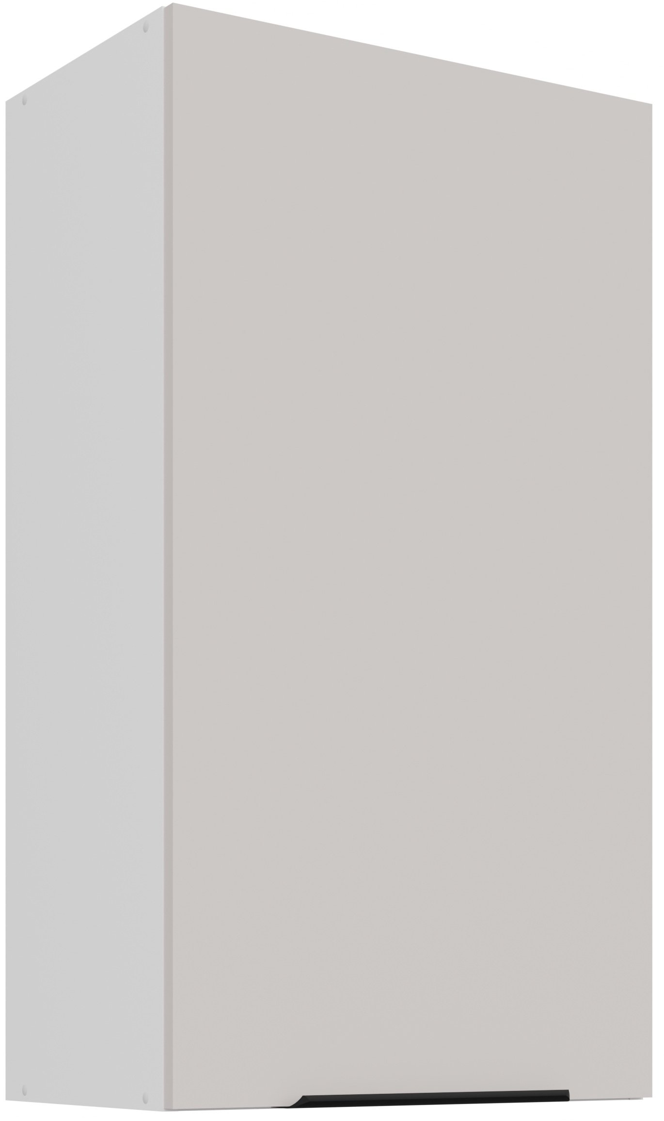 Frontu u toploj boji kašmira nadopunjuje snježno bijeli korpus, što kuhinji daje osjećaj prozračnosti i prostranosti. Laminirana površina otporna je na ogrebotine i jednostavna za čišćenje, pa je idealna za svakodnevnu upotrebu. Površine zadržavaju svoj izgled i nakon više godina korištenja, jer materijal ne gubi boju i ne deformira se pri uobičajenim promjenama temperature u kuhinji.