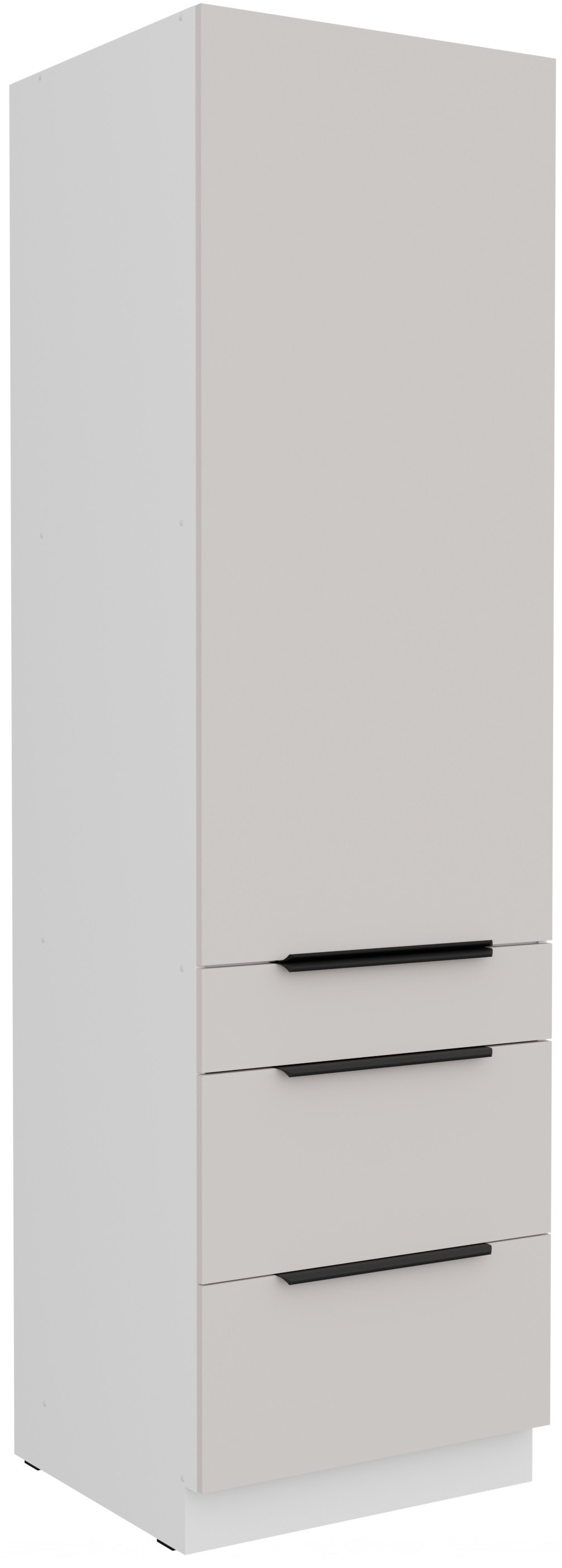 Frontu u toploj boji kašmira nadopunjuje snježno bijeli korpus, što kuhinji daje dojam prozračnosti i prostornosti. Laminirana površina otporna je na ogrebotine i jednostavna za čišćenje, stoga je idealna za svakodnevnu upotrebu. Površine zadržavaju svoj izgled i nakon više godina korištenja, jer materijal ne gubi boju i ne deformira se pri uobičajenim temperaturnim promjenama u kuhinji.