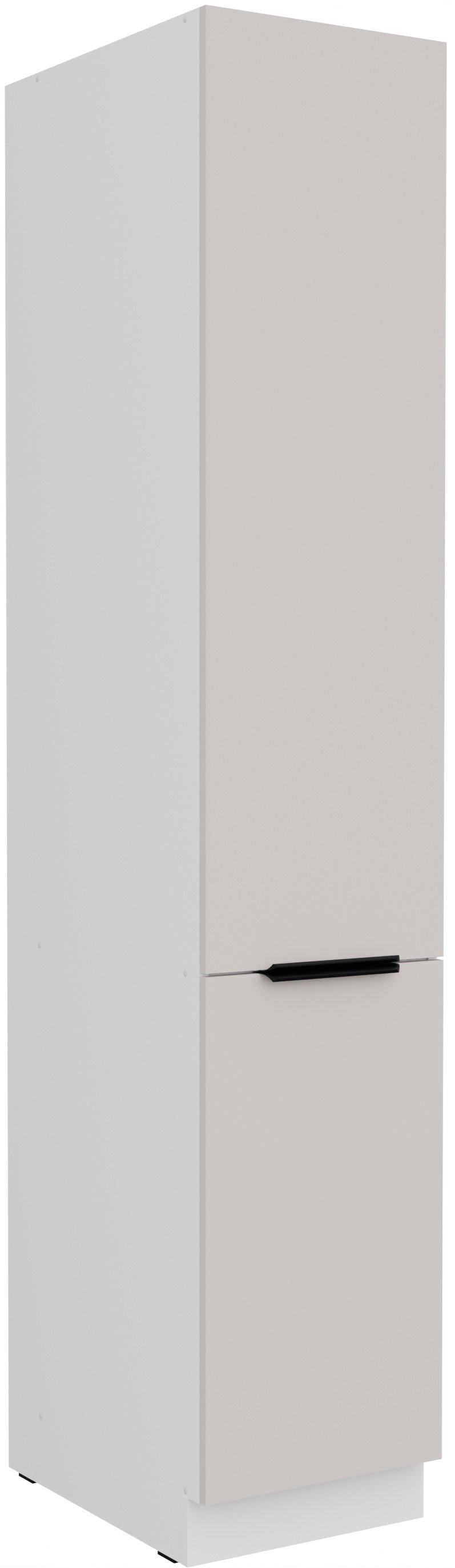 Frontu u toploj boji kašmira nadopunjuje snježno bijeli korpus, što kuhinji daje osjećaj prozračnosti i prostranosti. Laminirana površina otporna je na ogrebotine i jednostavna za čišćenje, stoga je idealna za svakodnevnu upotrebu. Površine zadržavaju svoj izgled i nakon više godina korištenja, jer materijal ne gubi boju i ne deformira se pri uobičajenim promjenama temperature u kuhinji.