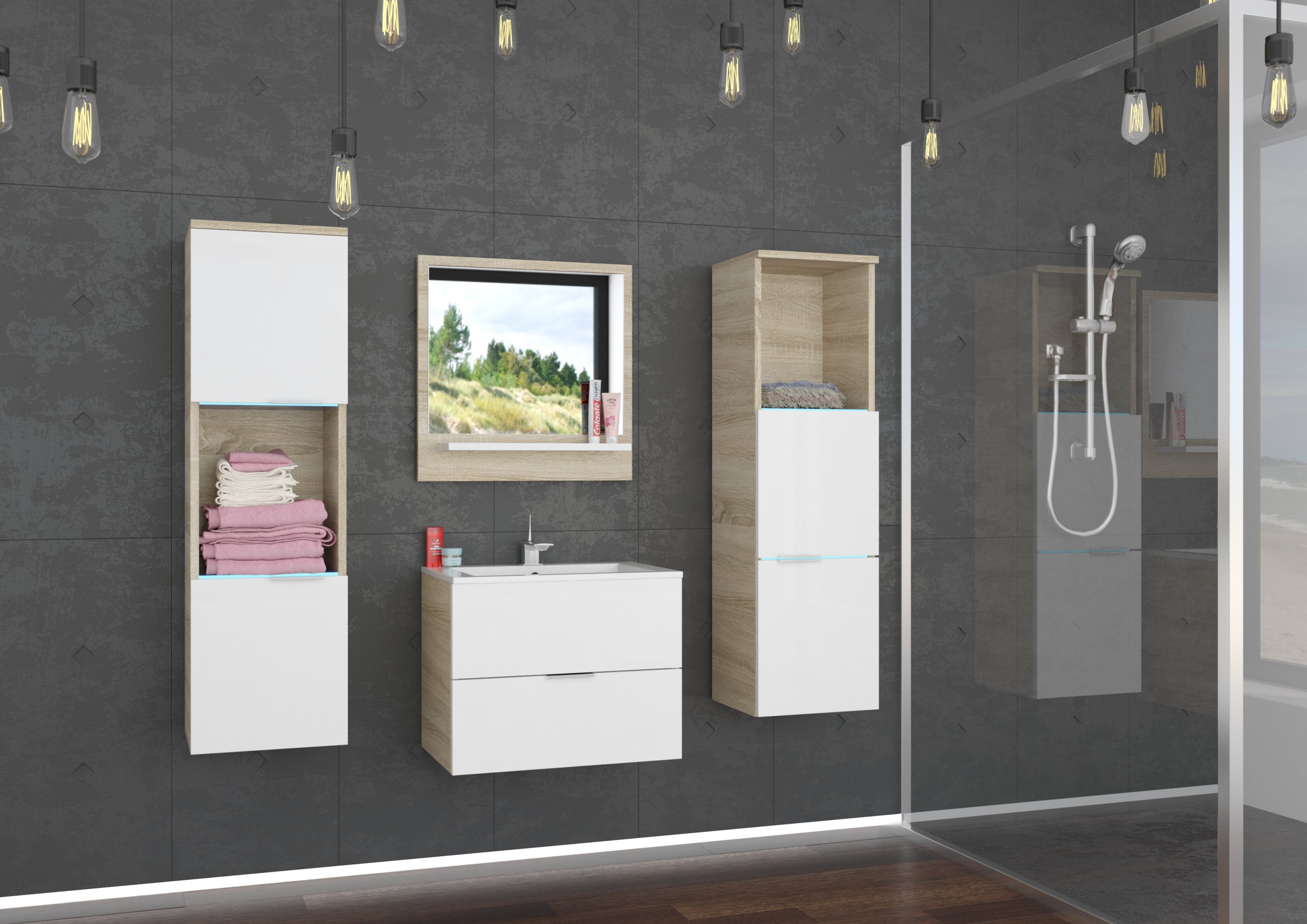 Set 3 - visoki Sjaj Bijela in sonoma hrast