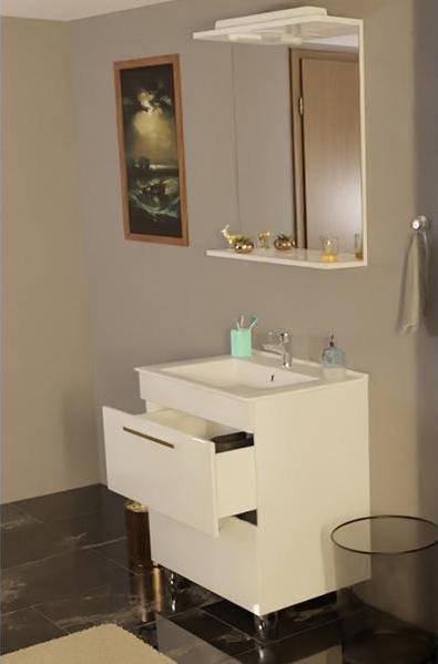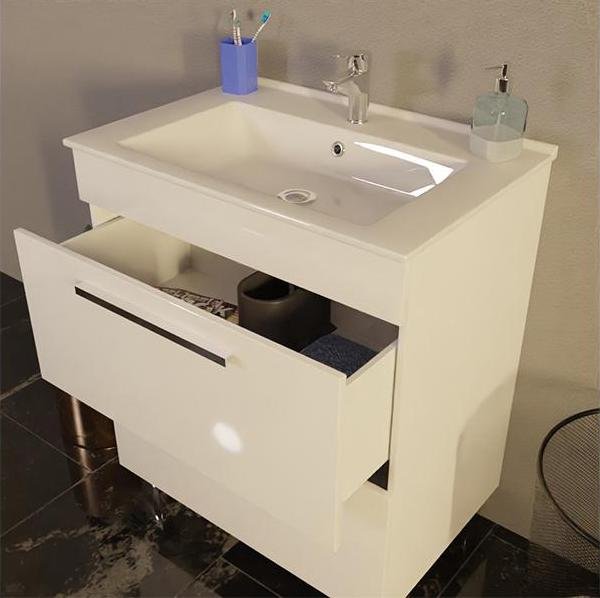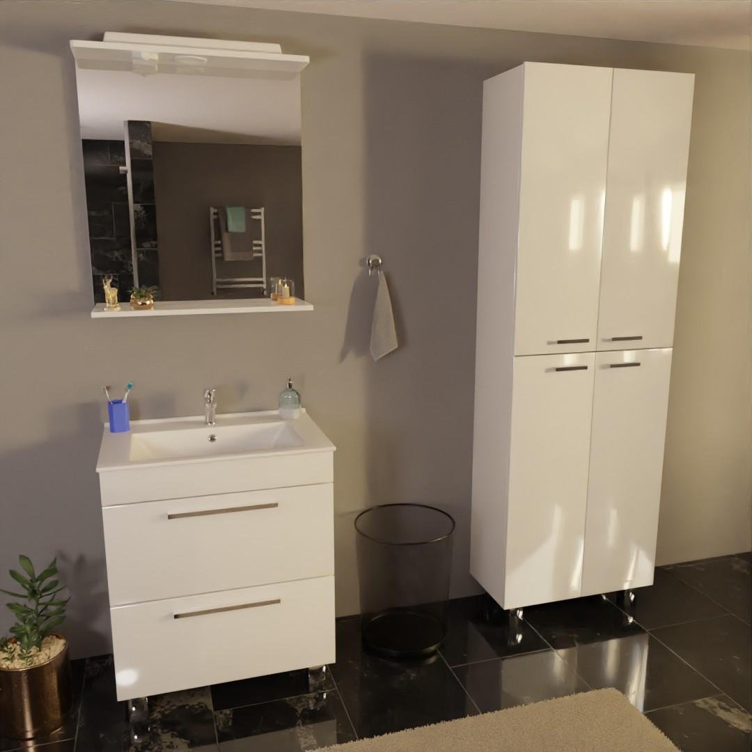 Ormarica je izrađena od izdržljivog MDF materijala, koji je poznat po svojoj otpornosti i dugom vijeku trajanja, a umivaonik je od kvalitetne keramike, koja je jednostavna za čišćenje i otporna na ogrebotine i mrlje. Bijela boja osigurava čist i svijetao izgled kupaonice, koji se savršeno uklapa s različitim stilovima unutarnjeg uređenja – od klasičnog do modernog.