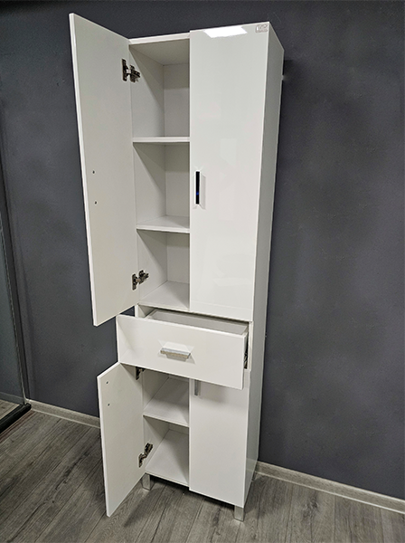 Bilo da se radi o kupaonici, hodniku ili čak spavaćoj sobi – posvuda će pronaći svoje mjesto. Zbog univerzalne bijele boje harmonično se povezuje s postojećim namještajem, a svojom visinom i uskim oblikom osigurava praktičnu pohranu čak i u manjim stanovima. To je komad namještaja koji nikada neće izaći iz mode i uvijek će zračiti čistoćom i urednošću vašeg doma.