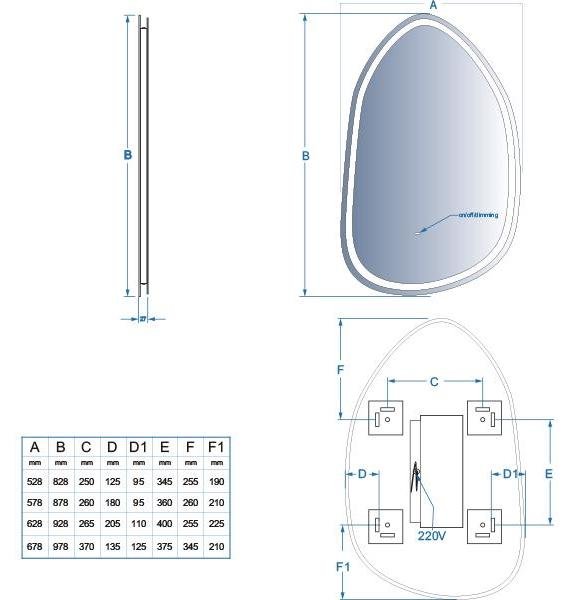 Ogledalo dimenzija 55x85 cm dizajnirano je tako da se odlično uklapa i u manje i u veće kupaonice. Srebrna boja okvira daje čist, minimalistički i moderan izgled koji se lako slaže s različitim stilovima interijera. Posebnost ogledala je napredno LED osvjetljenje koje stvara ugodnu svjetlost u nijansi 4000K – to je prirodno bijela svjetlost, savršena za svakodnevnu njegu lica, šminkanje ili brijanje.