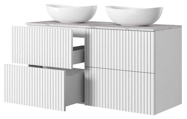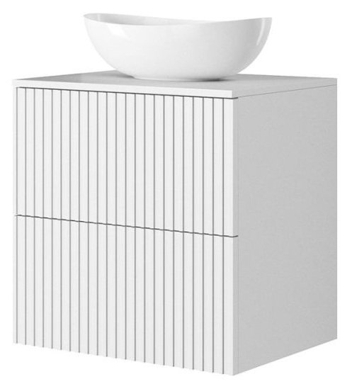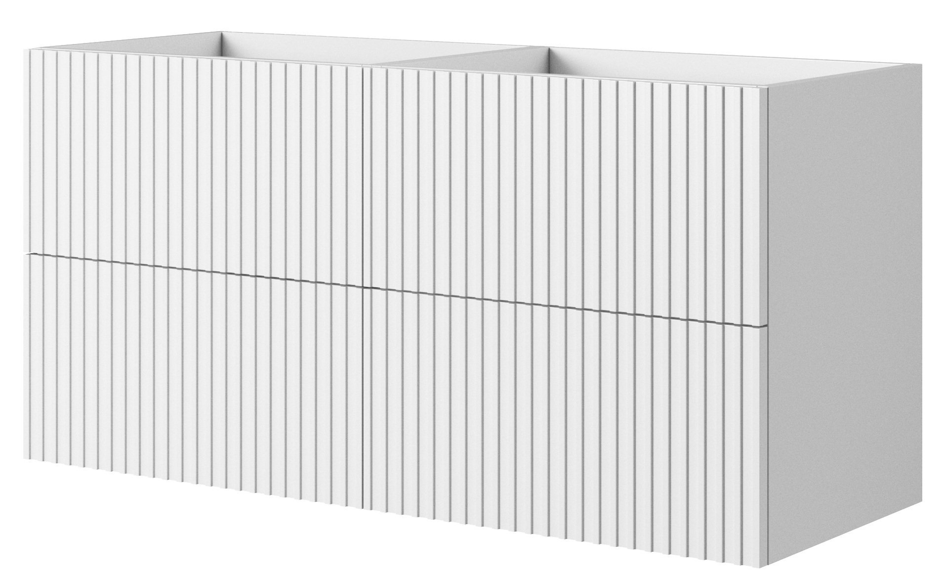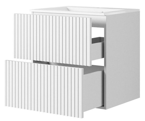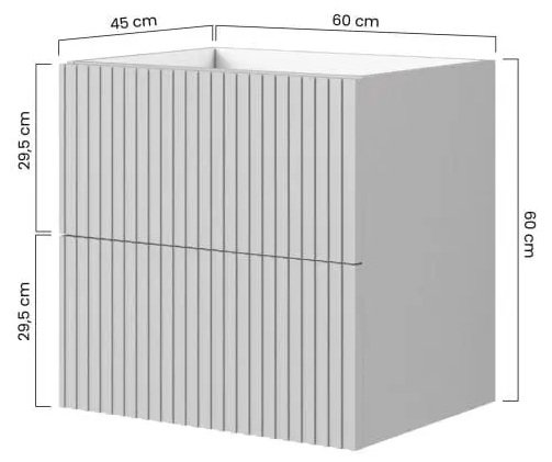 Nicole 60 2SZ odlikuje se izraženim rebrastim (vertikalno strukturiranim) uzorkom na frontama, koji dodaje dašak elegancije i sofisticiranosti. Ovaj dizajnerski element nije samo estetski privlačan, već i praktičan, jer omogućuje lakše otvaranje ormarića na pritisak, što znači da vam nisu potrebne ručke.