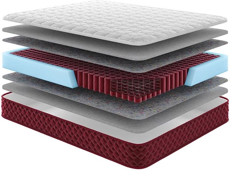 Model Monblan objedinjuje više slojeva kvalitetnih materijala koji zajedno čine uravnotežen sustav potpore, elastičnosti i prozračnosti. Madrac je sastavljen od slojeva Eco Fiber, Spring Foam, Protect Felt, Double jacquard i Soft filling. Svaki sloj ima točno određenu funkciju koja doprinosi općoj udobnosti i trajnosti proizvoda.