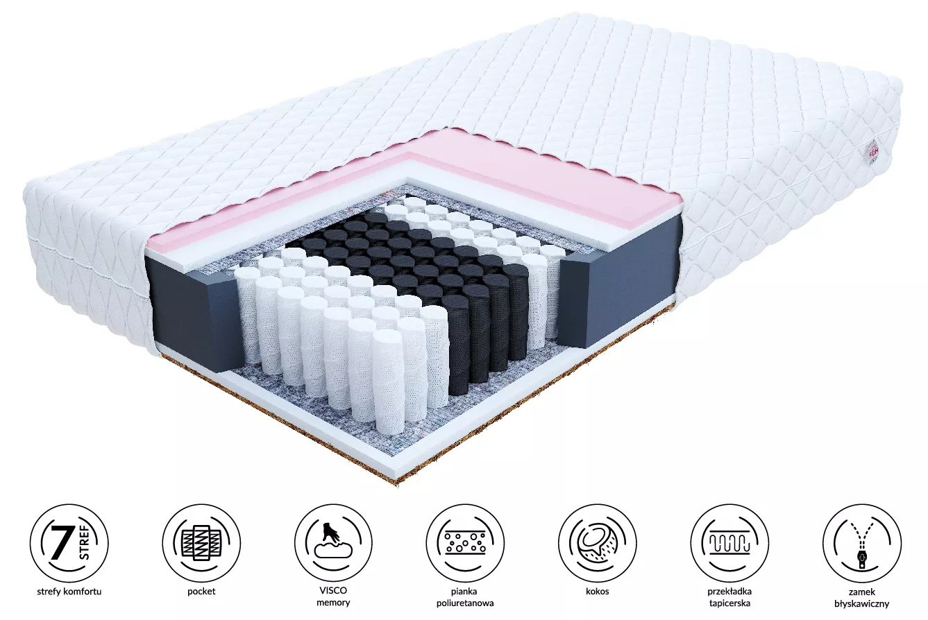 Madrac Reggio s džepičastom jezgrom izrađenom u NanoHARD tehnologiji i dvostruko kaljenom žicom značajno produljuje vijek trajanja madraca. 7 zona različite tvrdoće osigurava ergonomski položaj tijela tijekom odmora. Odlično se prilagođava obliku tijela, omogućuje prirodan položaj kralježnice tijekom spavanja. Sloj s kokosovaim vlaknima učvršćuje površinu madraca, te ima antibakterijska i antialergijska svojstva. Sloj ovčje vune održava stalnu tjelesnu temperaturu dok našoj koži omogućuje da diše.