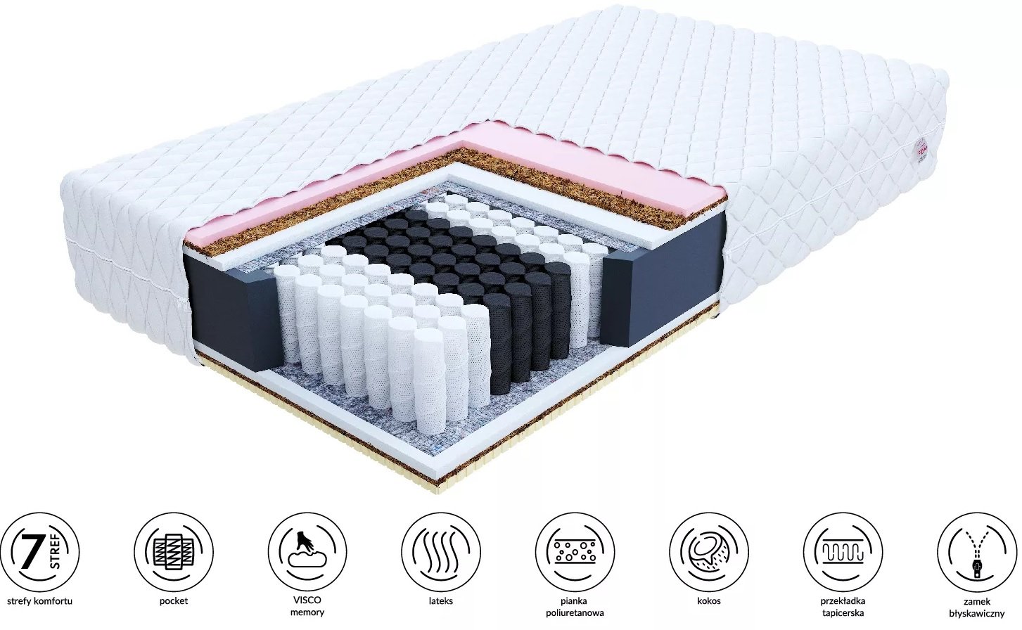 • Sastav: kokosovaa vlakna, perforiran lateks, poliuretanska pjena T25, termoplastična pjena Visco