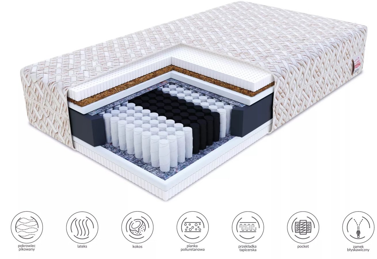 Otpornost sloja crne pjene s visokom fleksibilnošću osigurava odgovarajuću potporu i dobar protok zraka. Clima cool lateks s obje strane značajno povećava udobnost i sprječava prekomjerno znojenje tijekom spavanja. Dodatna prednost lateksa je njegova trajnost i odlična prilagodba obliku tijela.