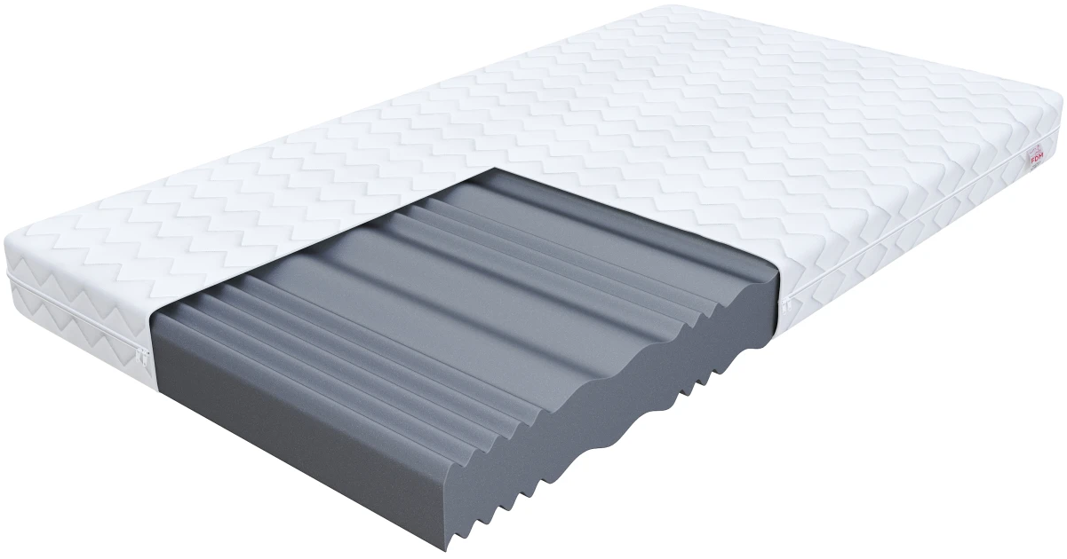 Visokokvalitetan madrac Livia Max Plus od izdržljive i vrlo elastične HR pjene. Svojstva ove pjene osiguravaju odličan protok zraka zahvaljujući posebnim kanalićima. Valovita površina i milijuni mjehurića u jezgri osiguravaju odličnu prilagodbu madraca obliku tijela te istovremeno visoku udobnost spavanja.
