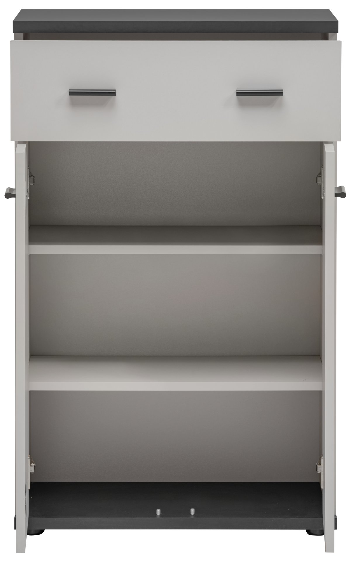 Dimenzije ormarića od 60.2x32.2x96.4 cm omogućuju optimalno iskorištavanje prostora bez narušavanja prohodnosti. Unutrašnjost skriva jednu policu koja omogućuje raspored obuće po vrstama ili članovima kućanstva. Zahvaljujući kompaktnom dizajnu, ormarić se lako uklapa u svaki prostor – od uskih hodnika do ulaznih prostora ili čak spavaćih soba. Dvokrilna vrata osiguravaju uredan izgled i štite obuću od prašine, dok glatke površine omogućuju lako čišćenje i održavanje.