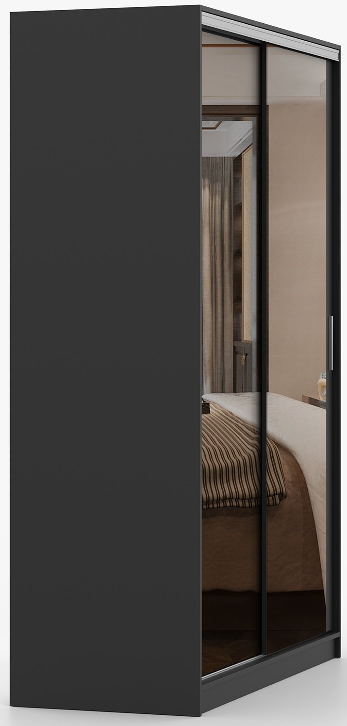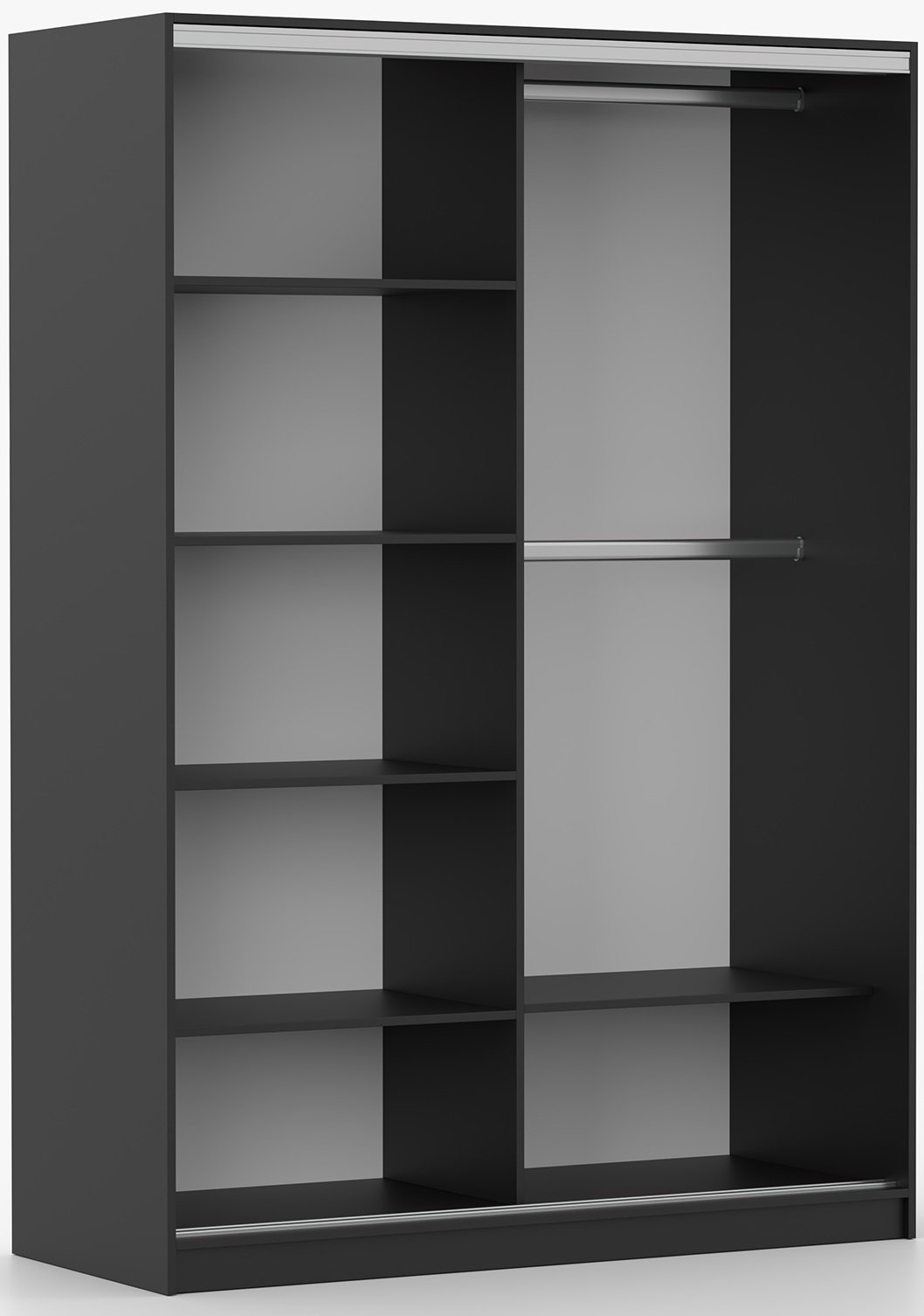 Garderobni ormar s kliznim vratima Tokyo M – Idżczak Meble odlikuje se suvremenim i funkcionalnim dizajnom koji spaja eleganciju crne boje s iznimnom praktičnošću kliznog mehanizma vrata. Ovaj ormar dimenzija 150x58x215 cm savršen je izbor za spavaće sobe, predsoblja ili garderobne prostore, gdje je važna i estetska usklađenost i optimalno iskorištavanje prostora. Izrađen je od kvalitetne laminirane ploče, što osigurava čvrstoću, stabilnost i dug vijek trajanja čak i pri svakodnevnoj uporabi.