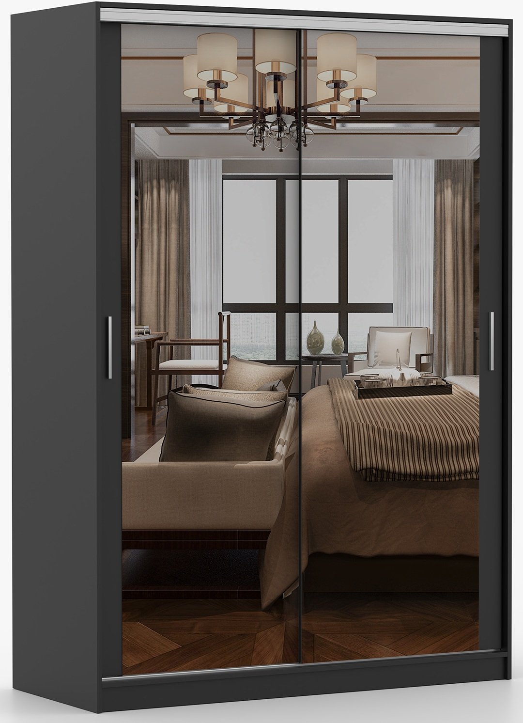 Dimenzije 150x58x215 cm omogućuju da se ormar Tokyo M prilagodi različitim prostornim ograničenjima. Njegova visina nudi dovoljno prostora za vješalice i gornje police, dok dubina omogućuje pohranu većih komada odjeće. Zbog kompaktne širine lijepo se uklapa i u manje sobe ili predsoblja, bez vizualnog opterećenja prostora.