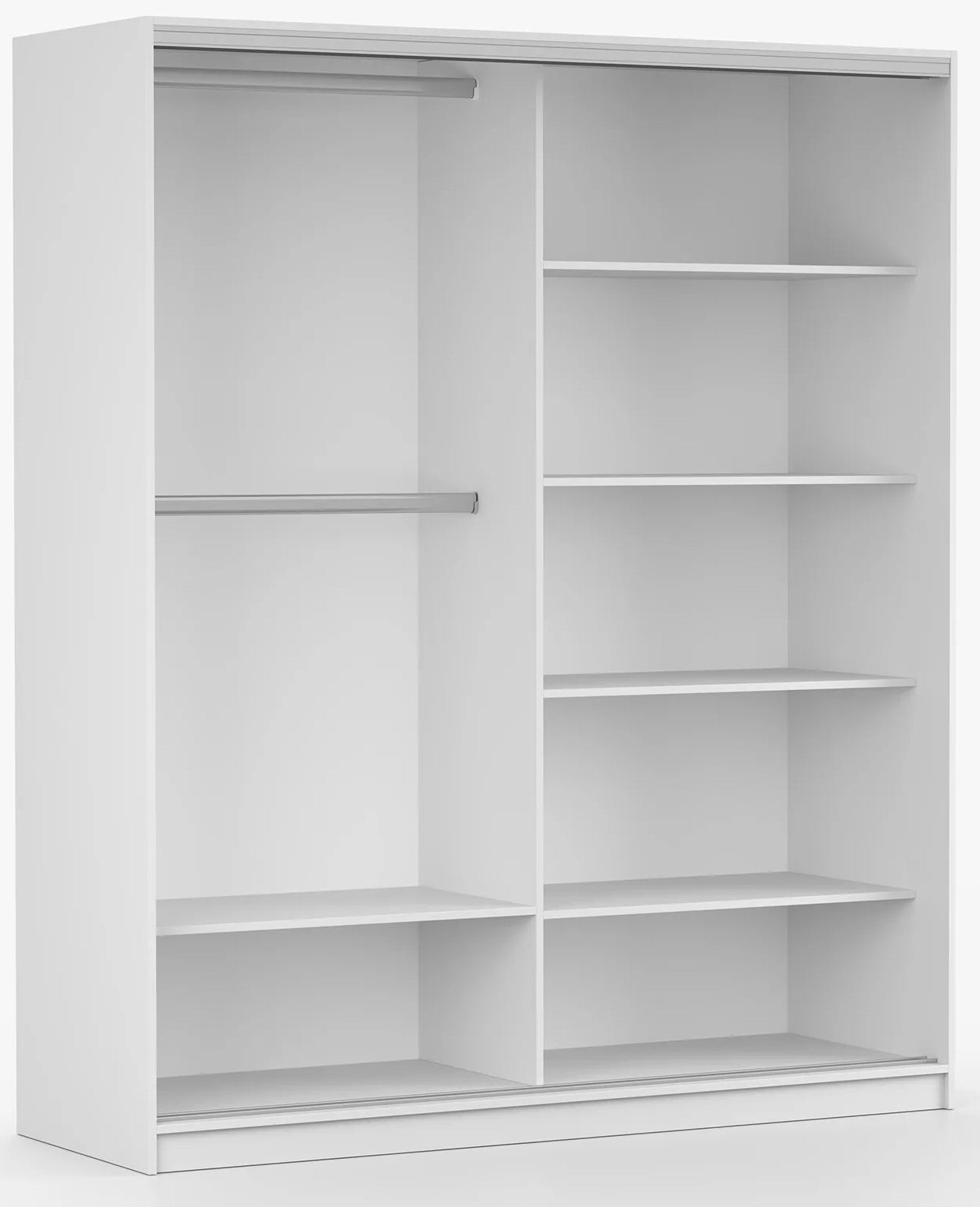 Ormar Tokyo M dizajniran je s mišlju na praktičnost. U unutrašnjosti nudi dovoljno prostora za vješanje odjeće te za slaganje rublja, posteljine ili dodataka. Klizni mehanizam vrata omogućuje glatko i tiho pomicanje, što povećava udobnost pri svakodnevnoj upotrebi. Bijela boja osigurava bezvremenski izgled koji se lako prilagođava različitim stilovima unutarnjeg uređenja – od minimalističkog do klasičnog.