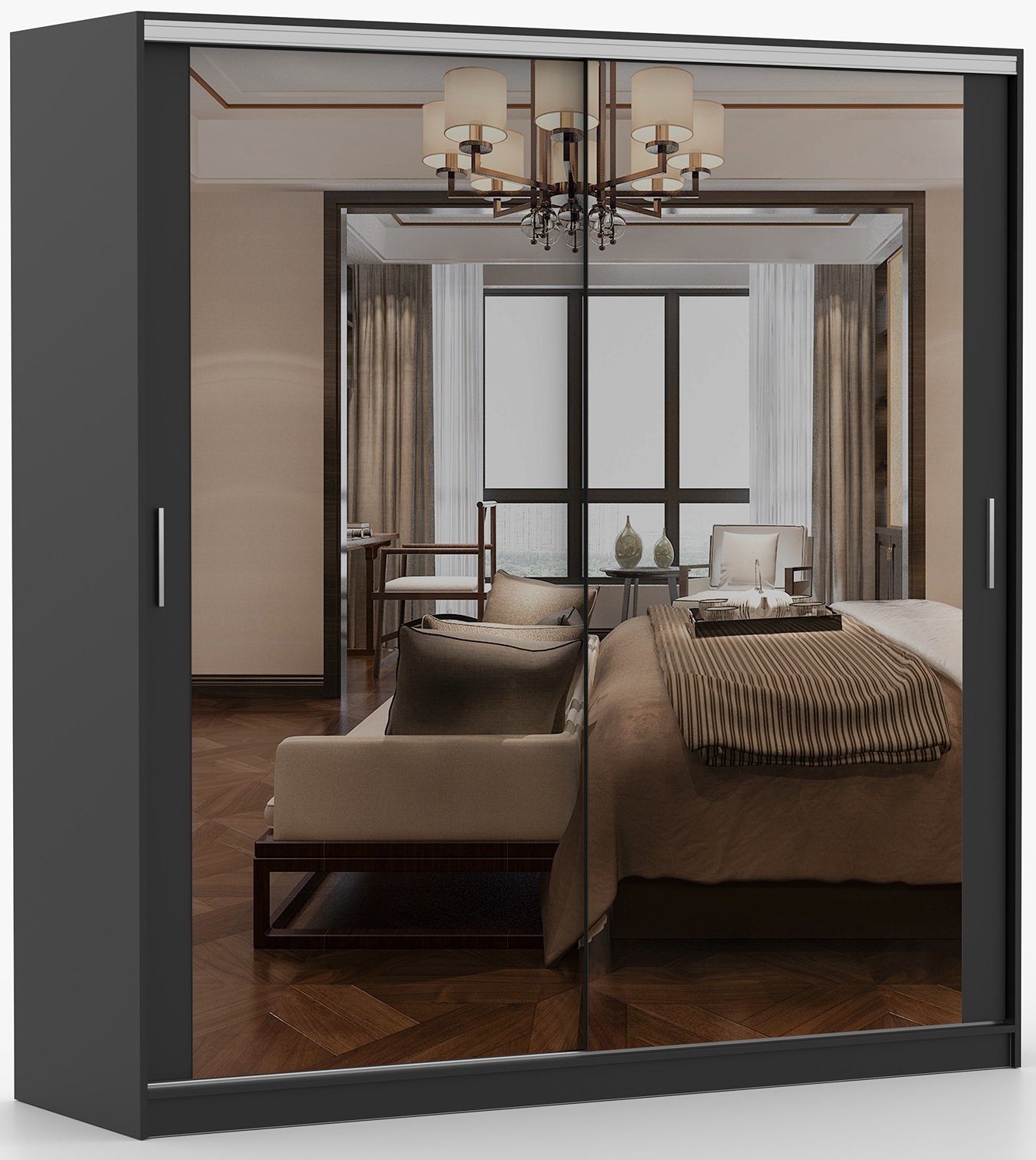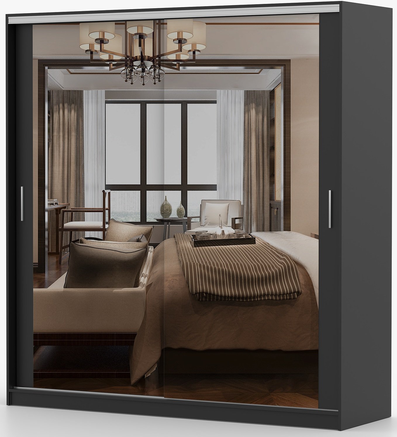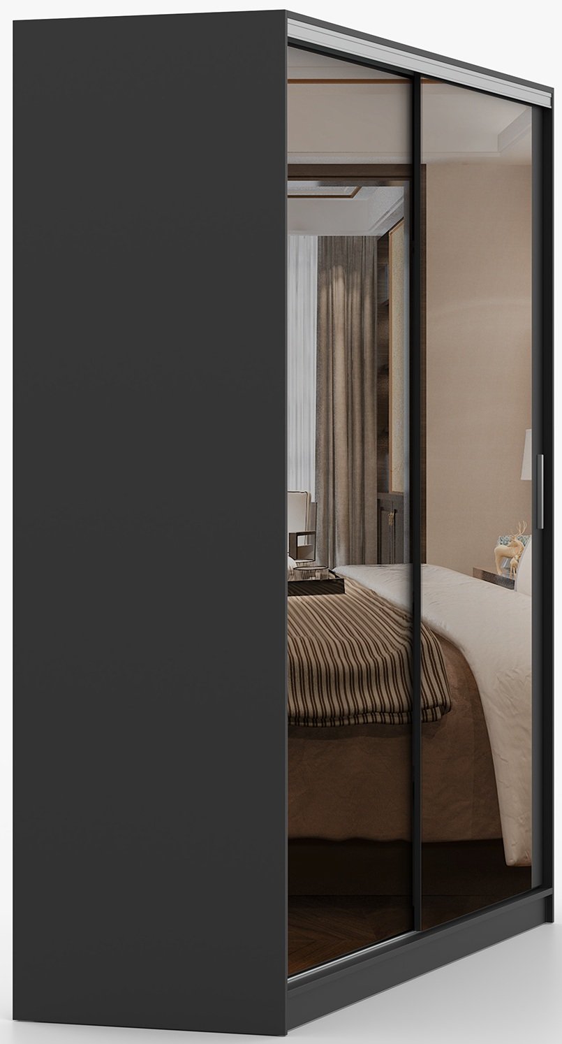 Garderobni ormar s kliznim vratima Tokyo M – Idżczak Meble odlikuje se modernim i funkcionalnim dizajnom koji spaja eleganciju crne boje s iznimnom praktičnošću kliznog mehanizma vrata. Ovaj ormar dimenzija 203x58x215 cm savršen je izbor za spavaće sobe, predsoblja ili garderobne prostore, gdje je važna i estetska usklađenost i optimalno iskorištavanje prostora. Izrađen je od kvalitetne laminirane ploče, što osigurava čvrstoću, stabilnost i dug vijek trajanja čak i pri svakodnevnoj upotrebi.