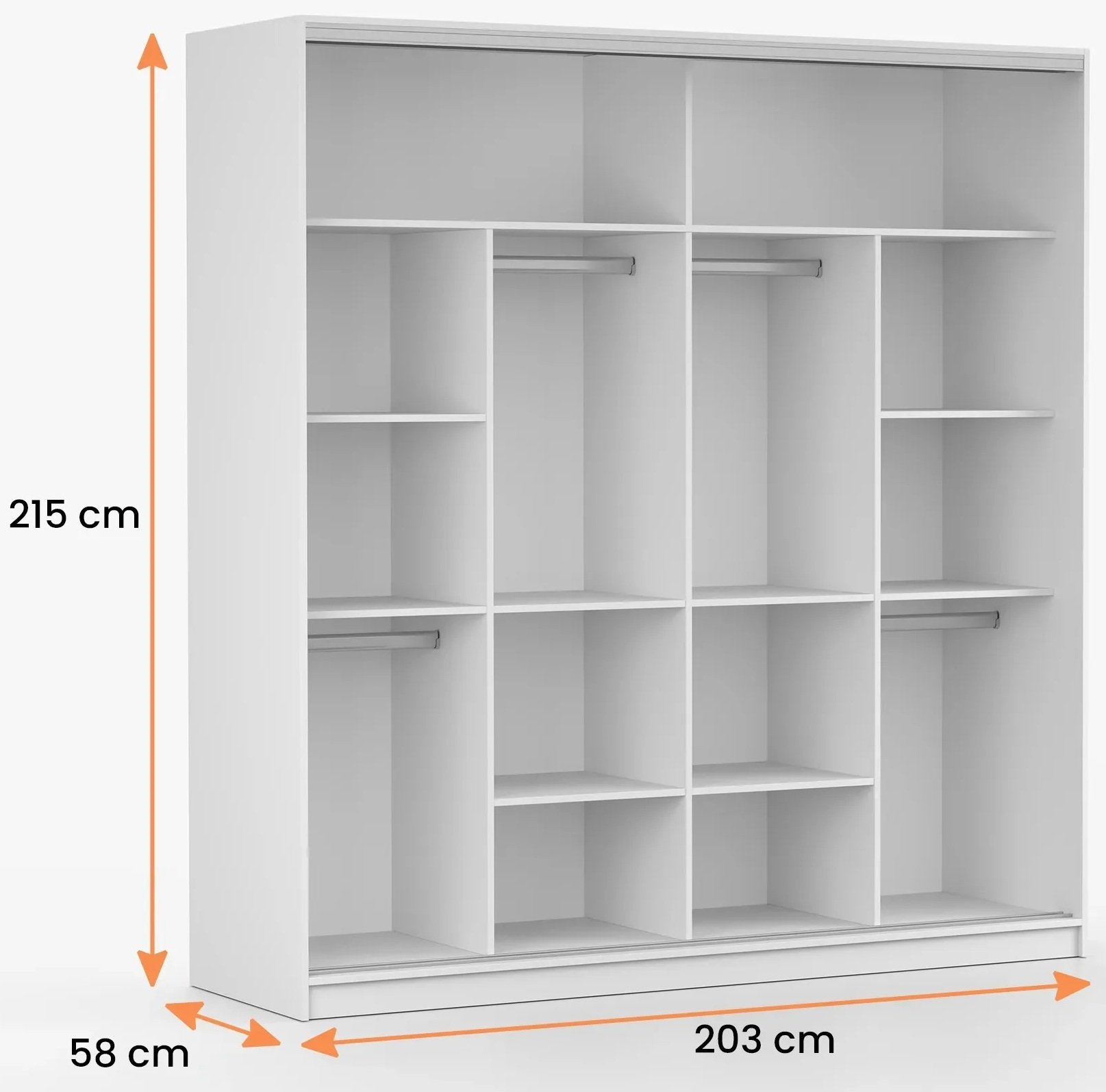 Klizna vrata su ključna prednost modela Tokyo M jer omogućuju jednostavan pristup unutrašnjosti ormara i u manjim prostorima. Otvaranjem vrata po vodilicama štedi se dragocjen prostor ispred ormara, što omogućuje učinkovitije postavljanje namještaja u sobi. Mehanizam kliznih vrata dizajniran je za glatko i tiho djelovanje, što povećava udobnost pri svakodnevnoj upotrebi.