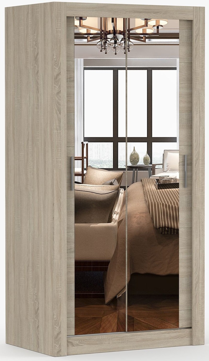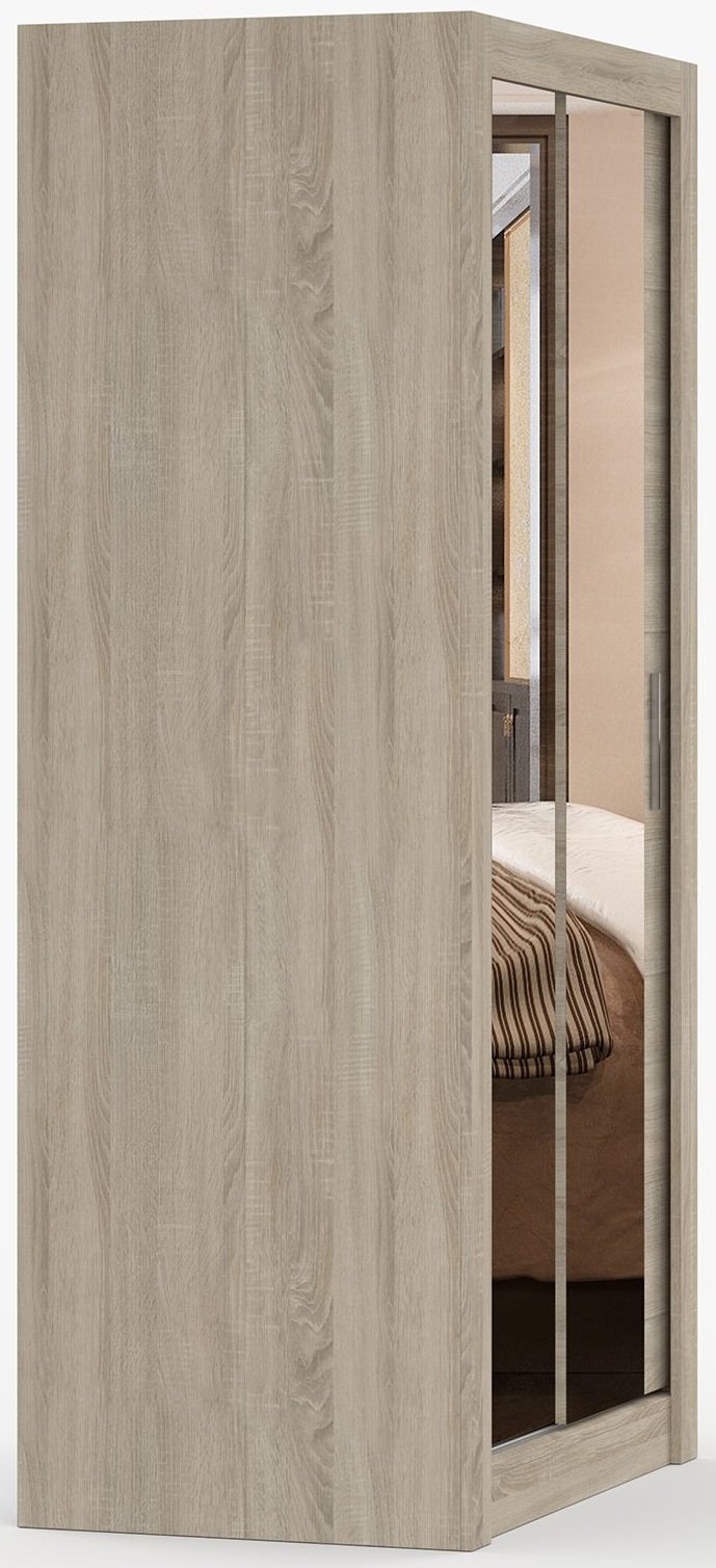 Topla i prirodna nijansa sonoma hrasta stvara osjećaj domaćeg ugođaja i mira. Ova boja iznimno je popularna jer se lijepo uklapa u različite stilove unutarnjeg uređenja – od klasičnog do modernog. Površina laminirane ploče oponaša prirodnu teksturu drva, što ormaru daje profinjen izgled, a ujedno ga čini jednostavnim za čišćenje i održavanje. U kombinaciji s minimalističkim dizajnom kliznih vrata ormar Milan predstavlja bezvremenski izbor koji se savršeno stapa s okolinom.