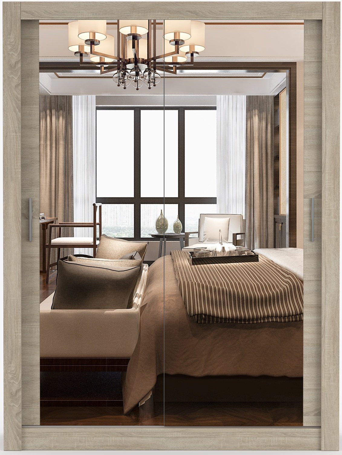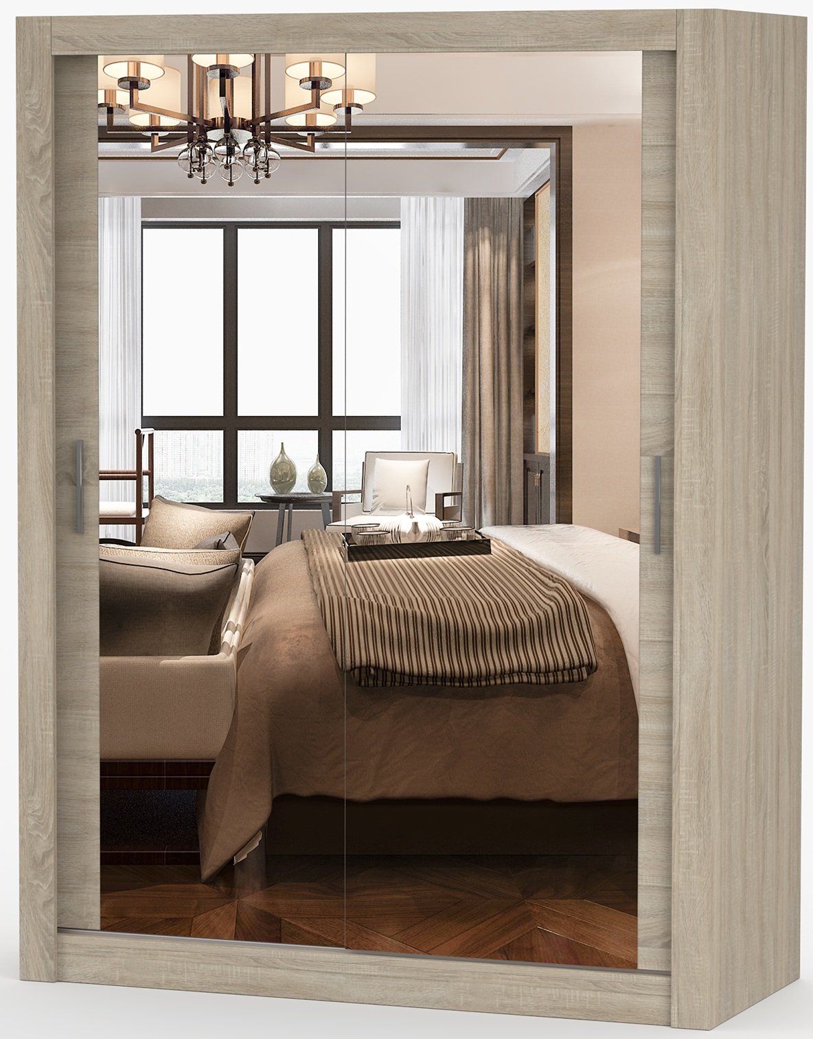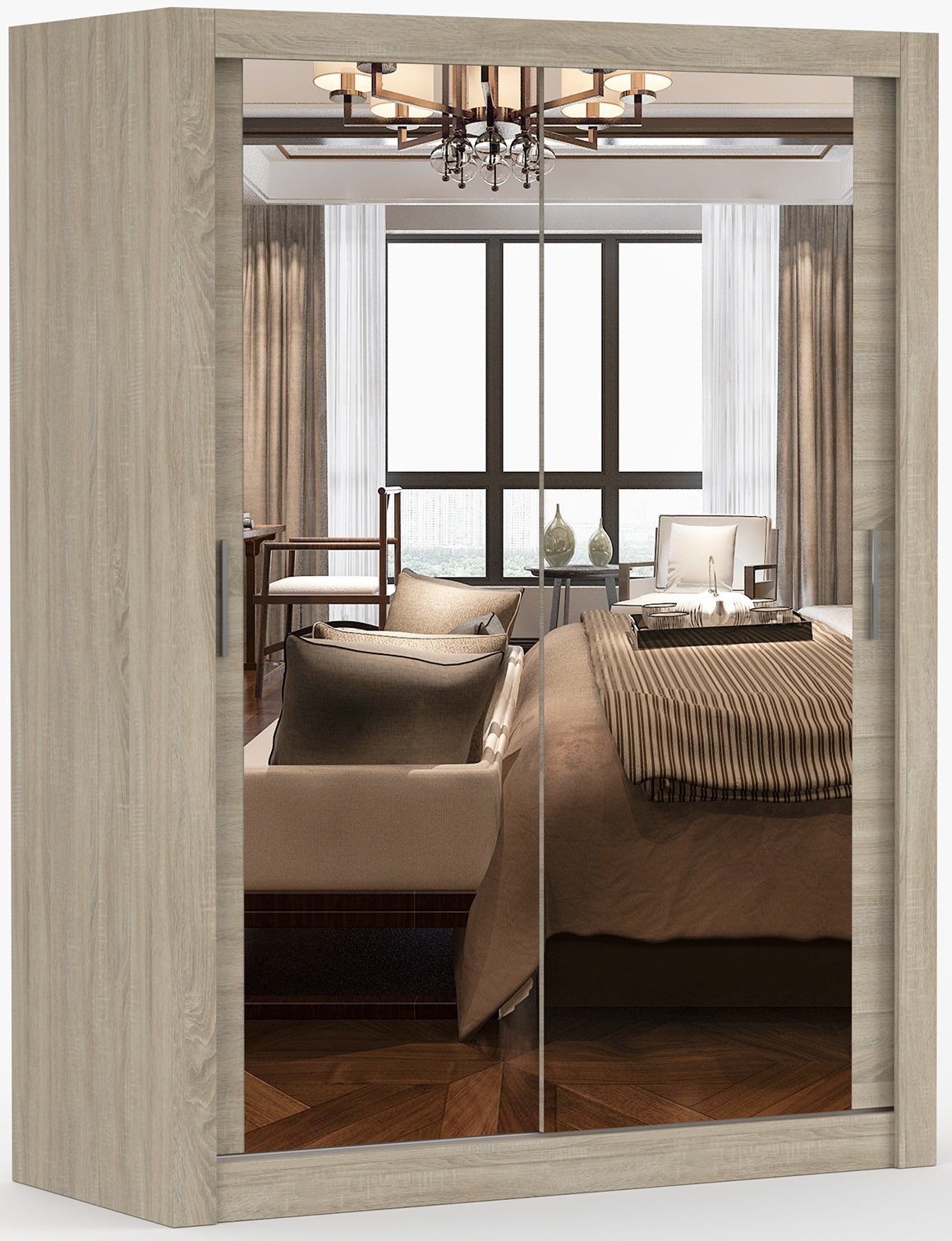 Topla i prirodna nijansa sonoma hrasta stvara osjećaj doma i mira. Ova boja izuzetno je popularna jer se lijepo uklapa s različitim stilovima unutarnjeg uređenja – od klasičnog do modernog. Površina laminirane ploče oponaša prirodnu teksturu drva, što ormaru daje profinjen izgled, a ujedno ga je lako čistiti i održavati. U kombinaciji s minimalističkim dizajnom kliznih vrata, ormar Milan predstavlja bezvremenski izbor koji se savršeno stapa s okolinom.