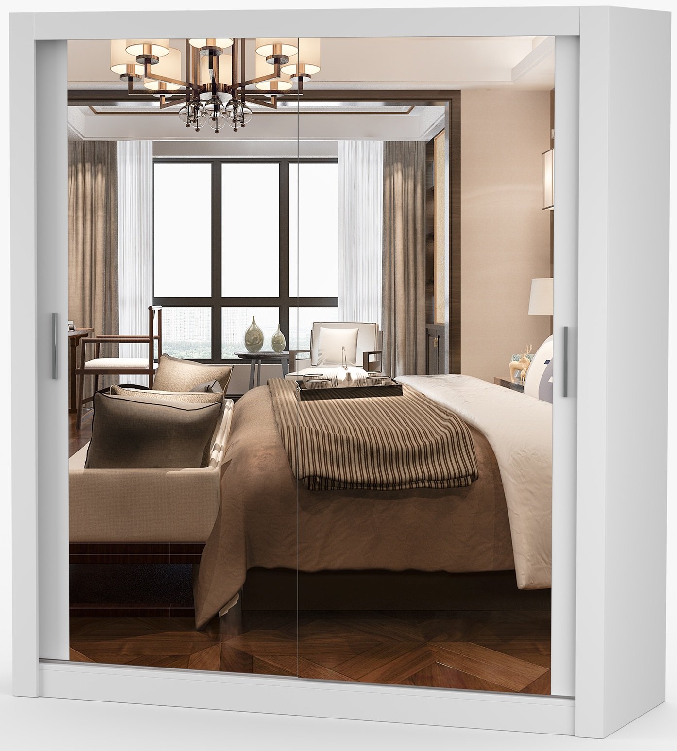 Garderobni ormar s kliznim vratima Milan u bijeloj boji predstavlja uravnoteženu kombinaciju suvremene estetike i praktične funkcionalnosti. Izrađen je od kvalitetne laminirane ploče koja osigurava čvrstoću, otpornost na svakodnevnu upotrebu i jednostavno čišćenje. Sa svojom širinom od 180 cm, dubinom od 64 cm i visinom od 215 cm savršeno se uklapa u manje ili srednje velike prostore, gdje je važna učinkovita iskoristivost svakog centimetra. Klizna vrata omogućuju jednostavno otvaranje bez dodatnog prostora za njihanje krila, što je idealno za manje spavaće sobe, predsoblja ili garderobne kutke.