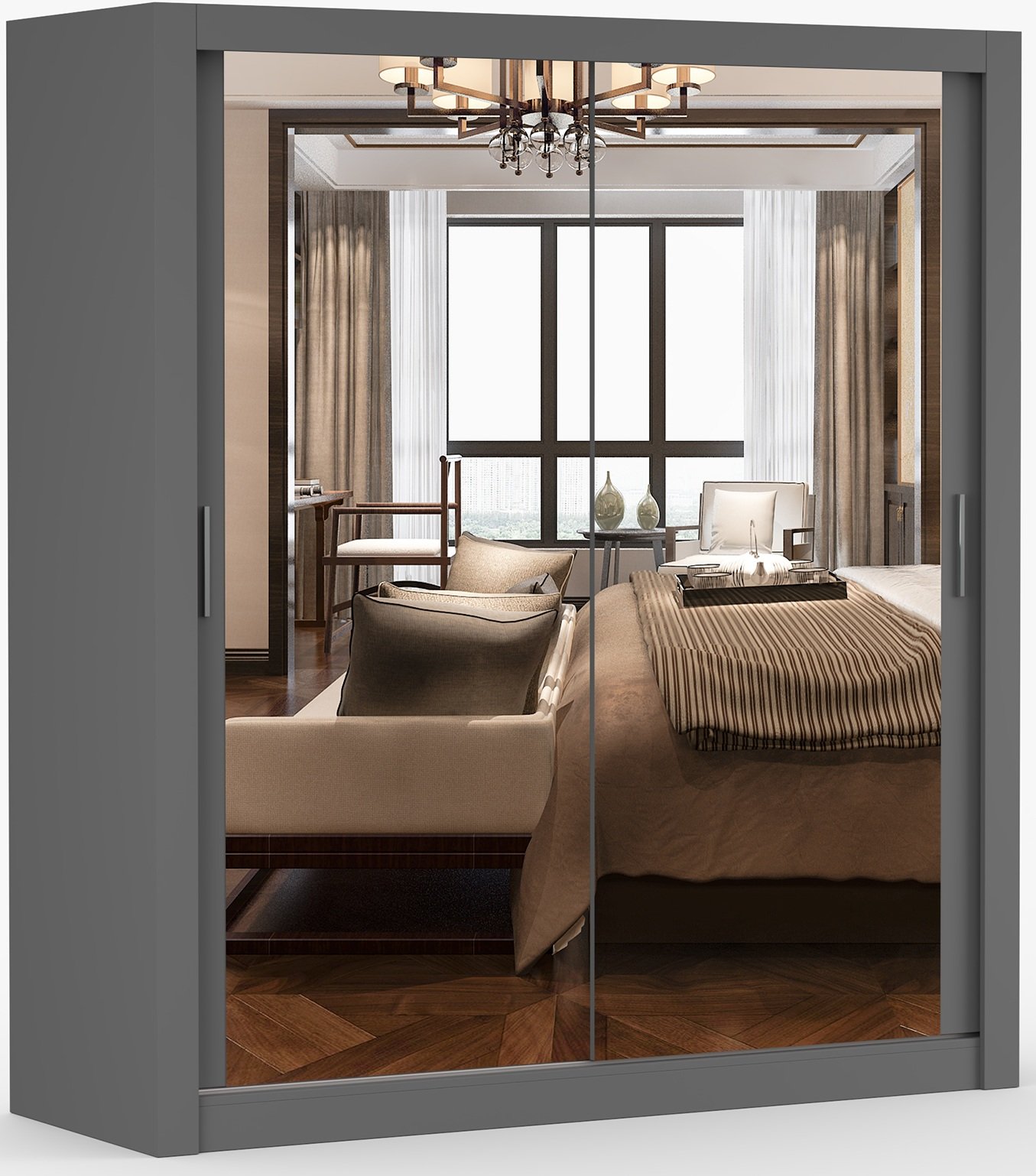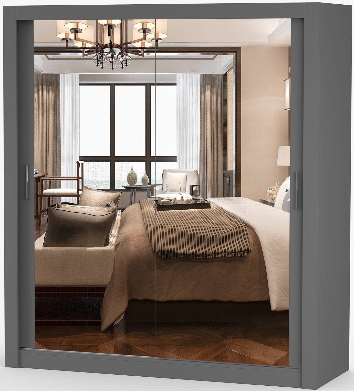 Elegantna i funkcionalna garderobna ormar s kliznim vratima Milan izvrstan je izbor za sve koji žele urediti svoj prostor s osjećajem za stil i praktičnost. Izrađen je od kvalitetne laminirane ploče, što osigurava dug životni vijek i jednostavno održavanje. Ormar je u suvremenoj sivoj boji, koja se lijepo uklapa s različitim unutarnjim stilovima – od minimalističkih do klasičnih. Sa svojom širinom 180 cm, dubinom 64 cm i visinom 215 cm nudi dovoljno prostora za odjeću, obuću i dodatke, a da pritom ne zauzima previše mjesta u vašoj sobi.